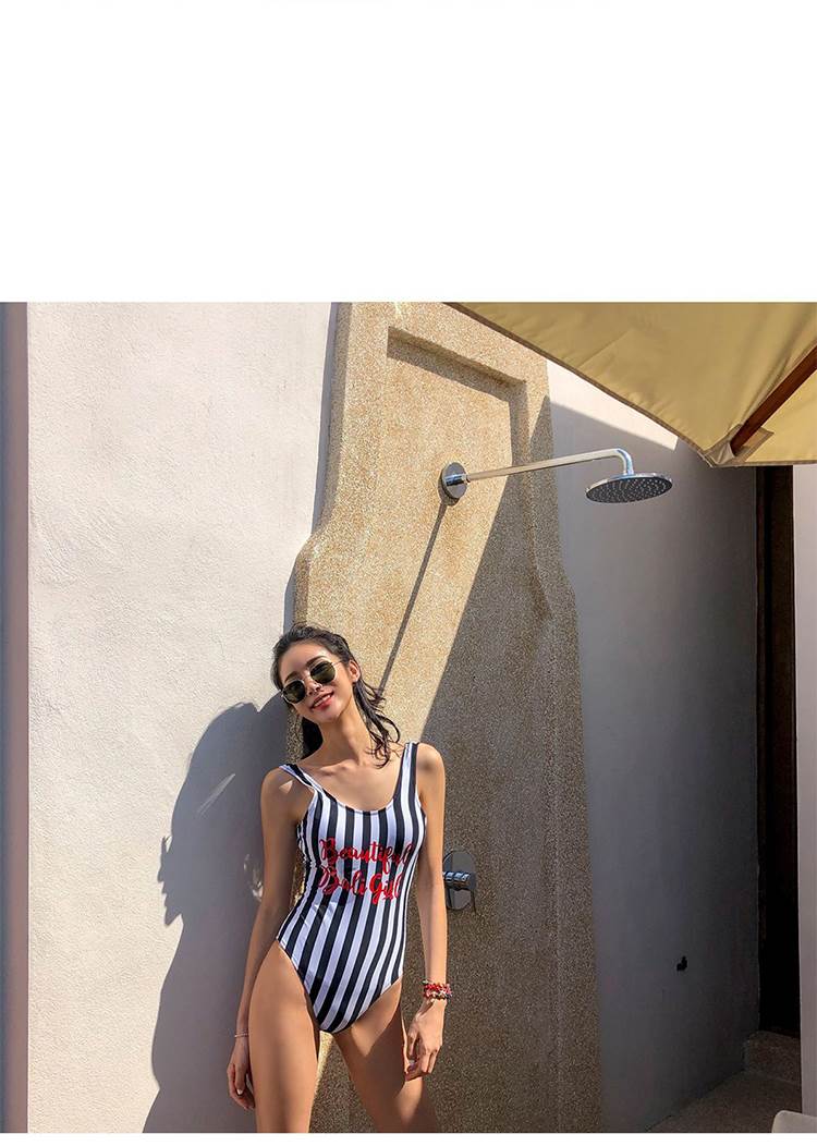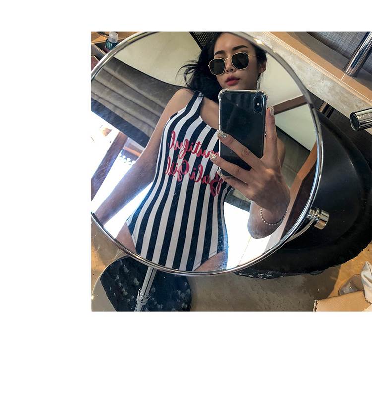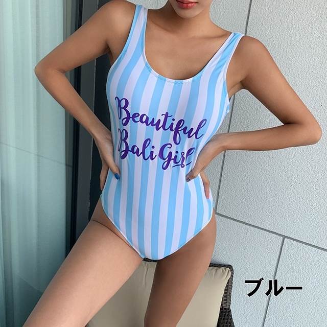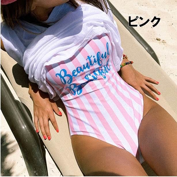 3色 ワンピース 水着 モノキニ レディース アメリカン 黒 青 ピンク ストライプ 英文字 ロゴ ハイレグ セクシー きれいめ カッコイイ ポップ 元気 女子 おしゃれ 肌見せ ブラック ブ クール