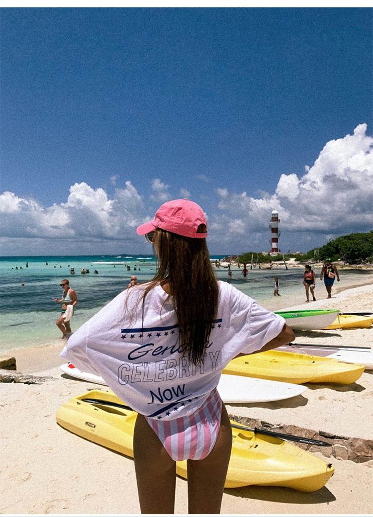 アメリカンテイストなストライプが可愛いワンピ水着!