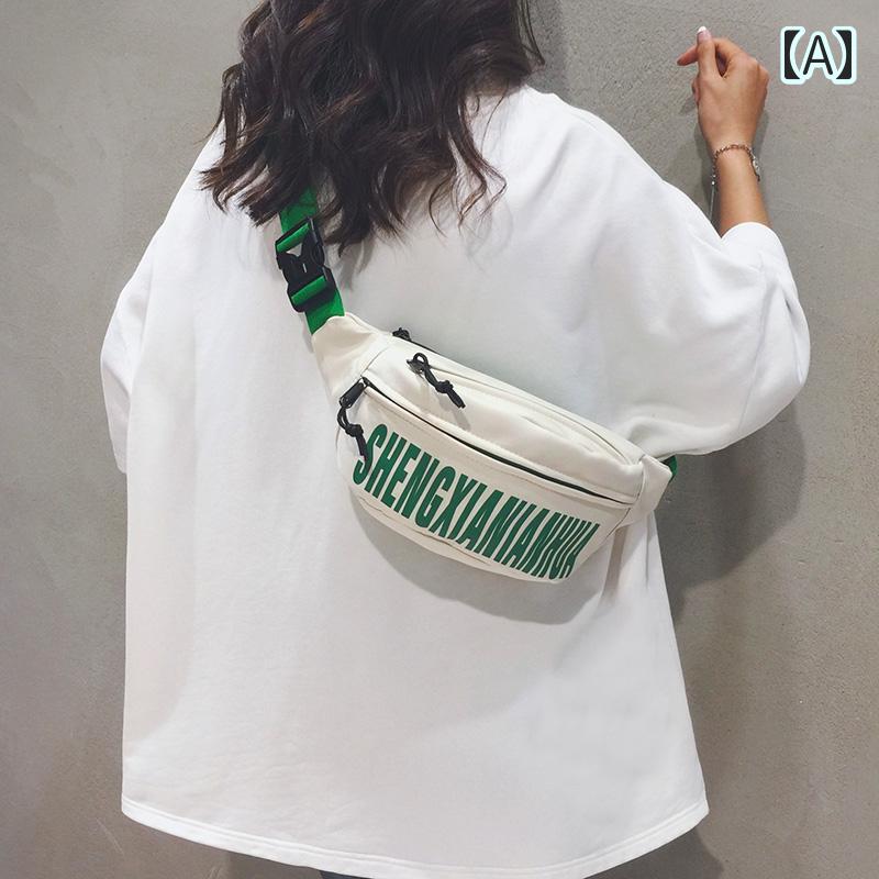 ボディバッグ 可愛い 英文字 ロゴ ク バッグ レディースバッグ ショルダーバッグ メッセンジャーバッグ 続々入荷中 A:ホワイトグリーン B:ホワイトブラック C:ブラック