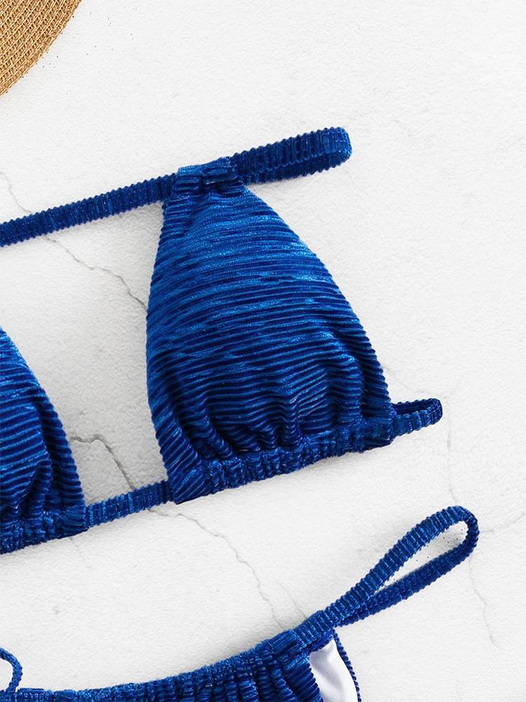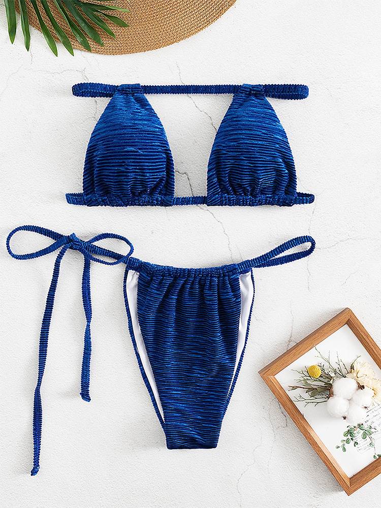 ブラジリアン ビキニ セクシー 水着 レディース 紐ビキニ 三角ビキニ 青 ブルー 上下セット 個性的 かっこいい 露出 ユニーク パッド付き 海外 セパレート トライアングル 他にない