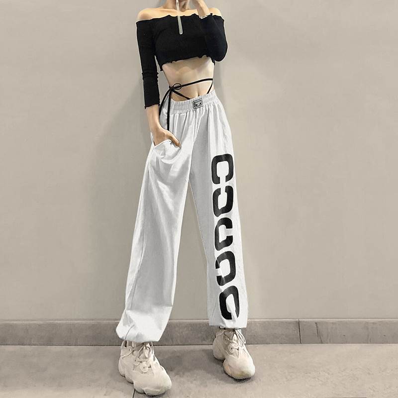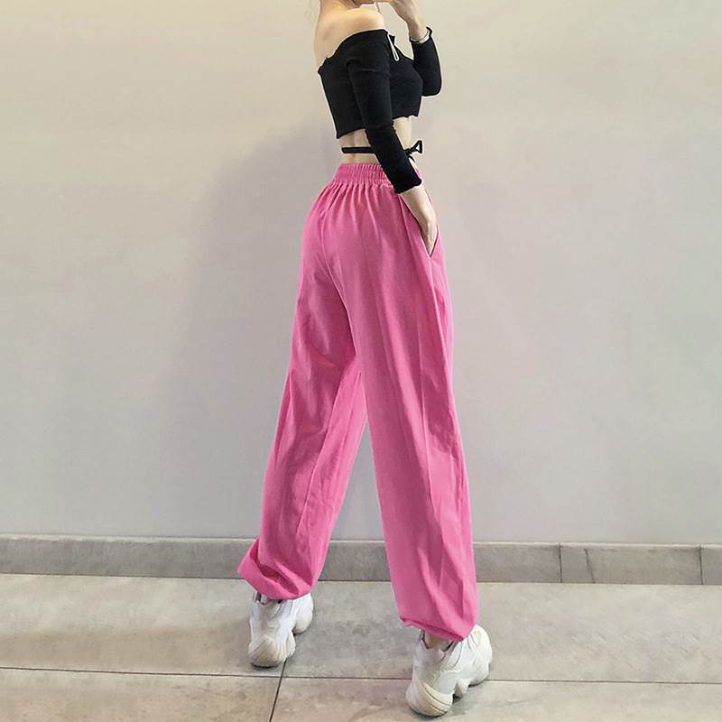 2色 スウェット パンツ ボトムス レディース スポーティー ピンク 白 無地 ウエストゴム ロゴ ストリート ダンス ヨガ ズボン ジャージ スポーツMIX カジュアル 春 秋 冬 10代 夏