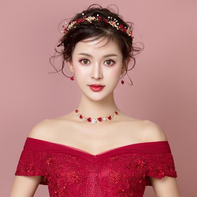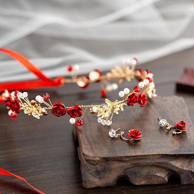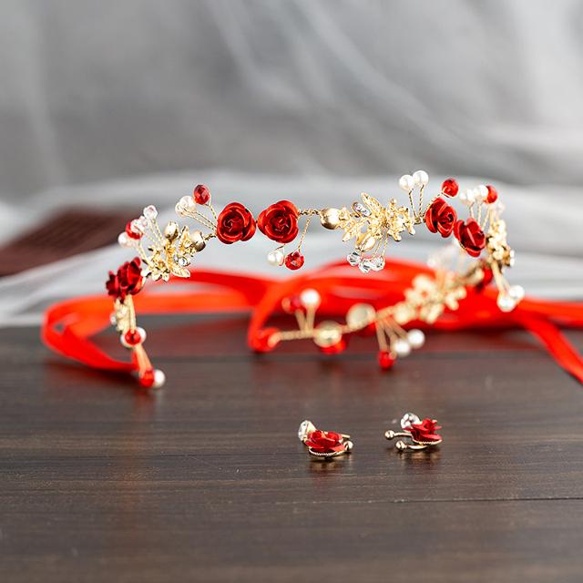 ウェディング ヘッドドレス アクセサリー 3点セット カチューシャ 結婚式 二次会 花嫁 ブライダル セット イヤリング ピアス ネックレス 髪飾り ヘッド アクセ 花 ローズ おしゃれ 上品 バラ