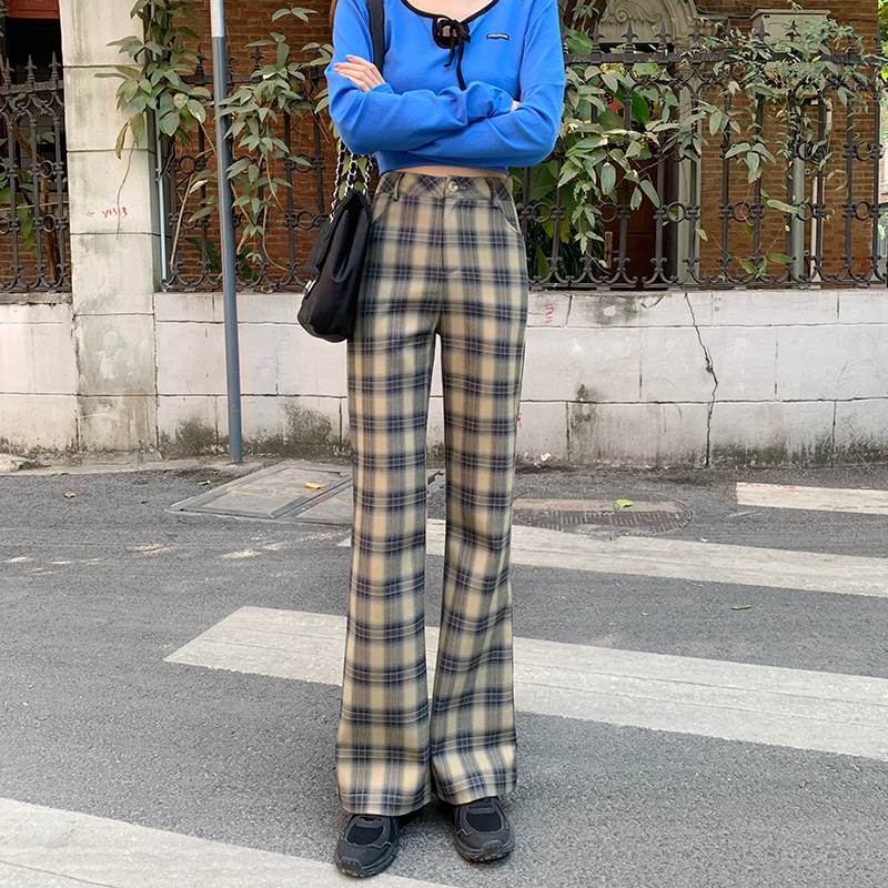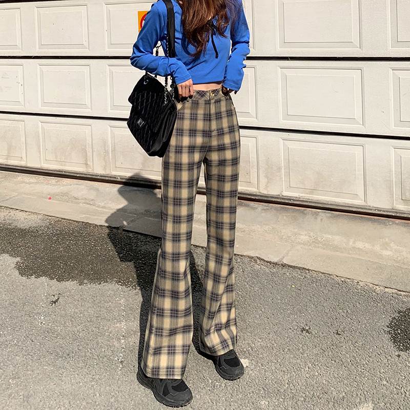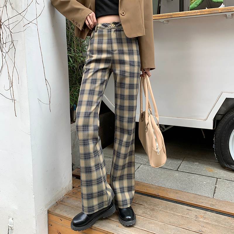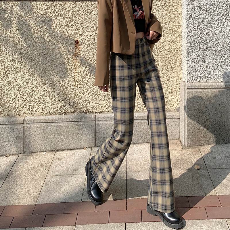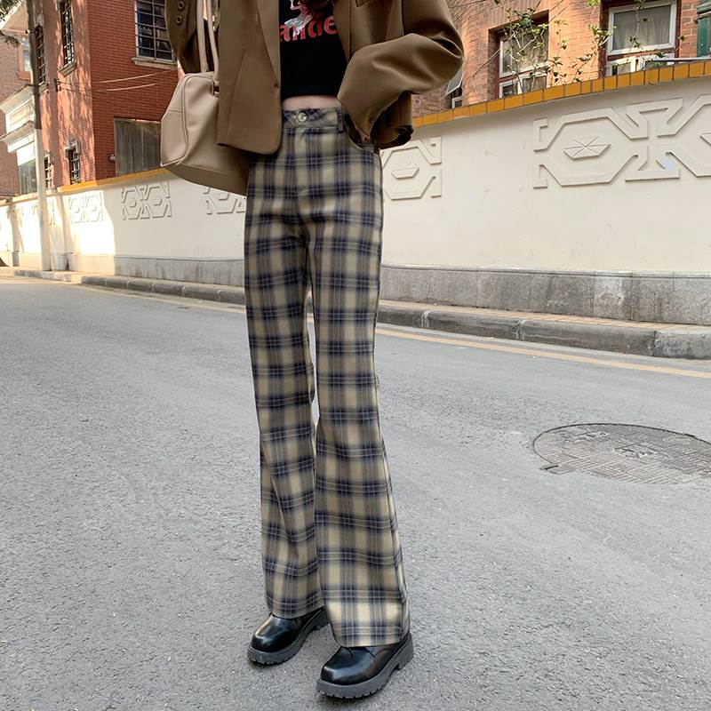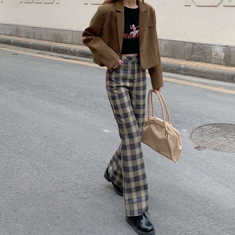 秋らしいチェックのトレンドのフレアパンツ♪