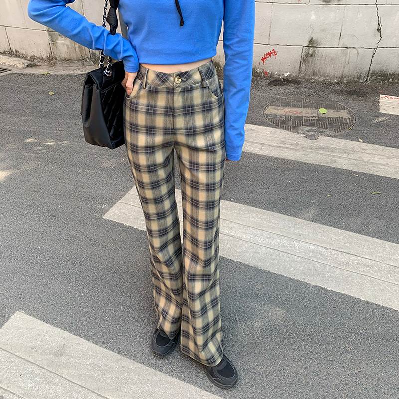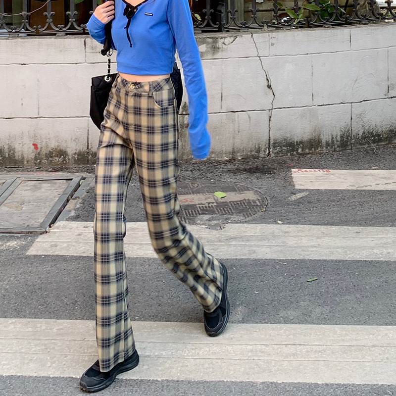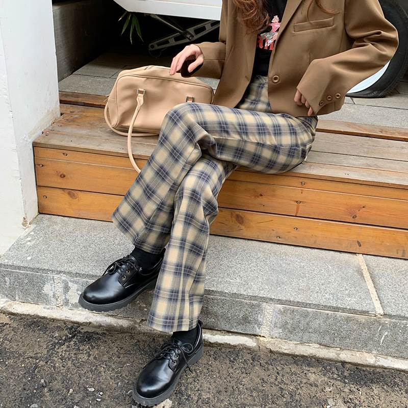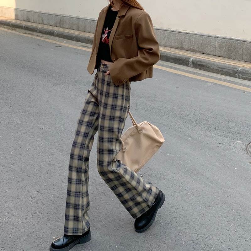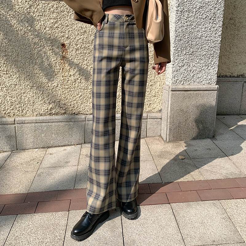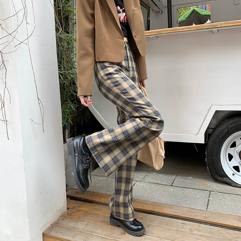 秋らしいチェックのトレンドのフレアパンツ♪
