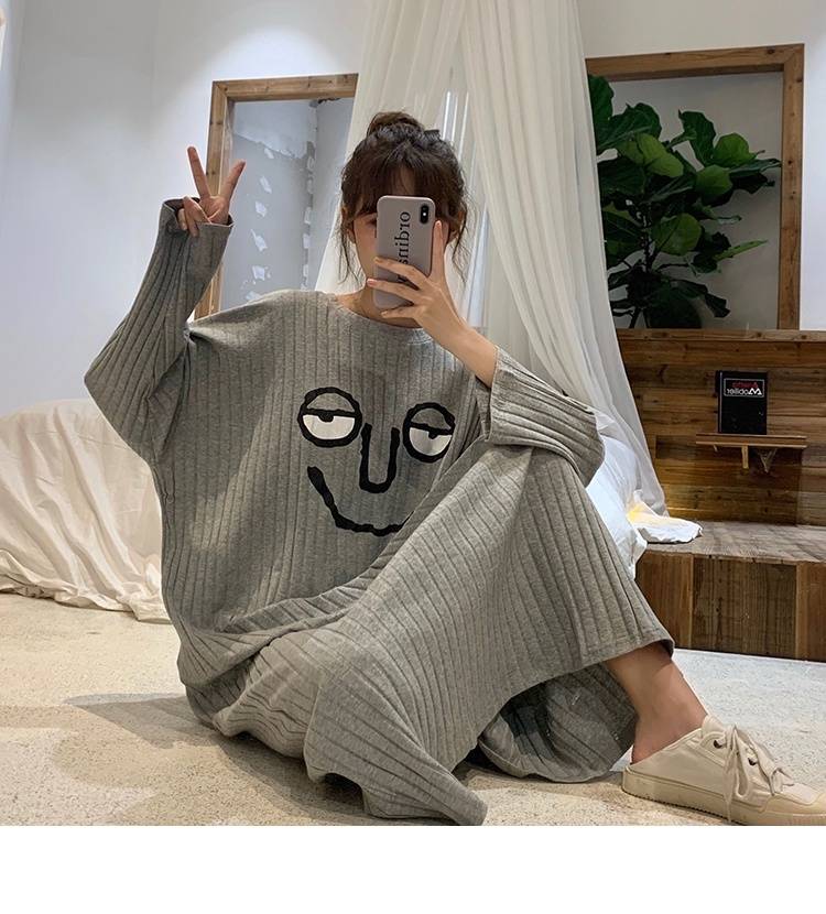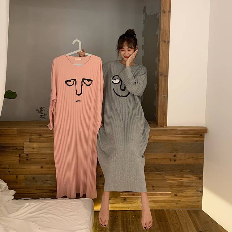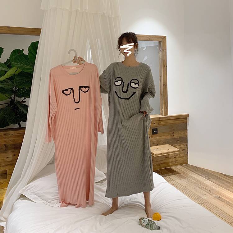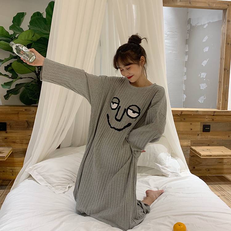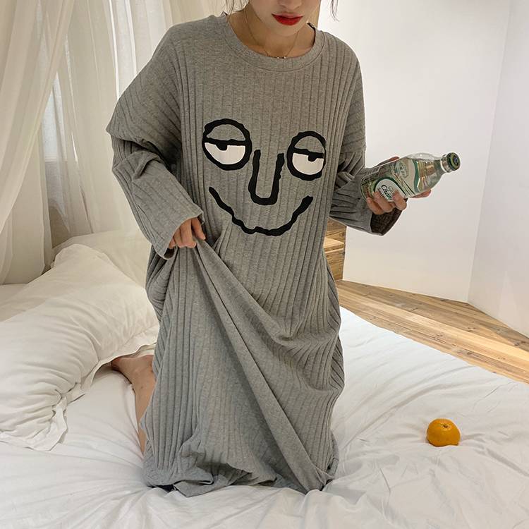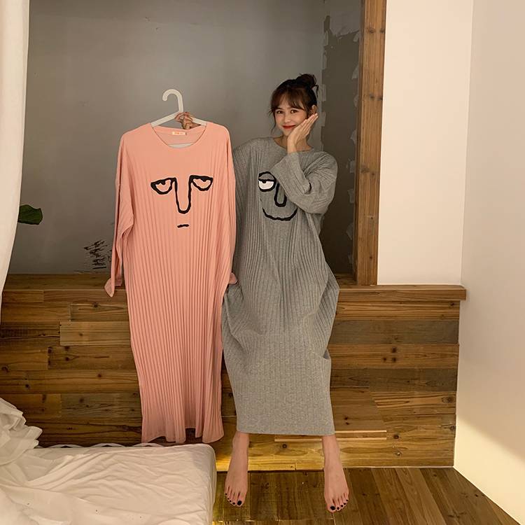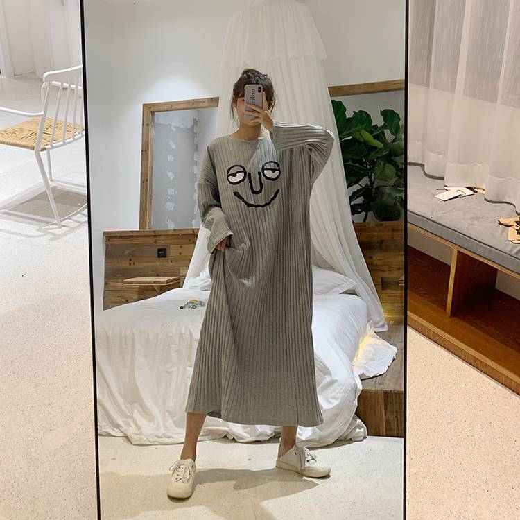 ルームウェア レディース かわいい ワンピース パジャマ 春 秋 綿 長袖 カジュアル 寝巻き 部屋着 ホームウェア 大きいサイズ xl 2xl グレー ピンク シンプル ラフ ゆ ネイビー