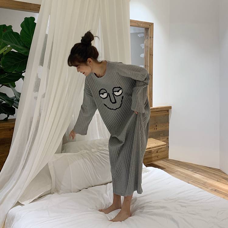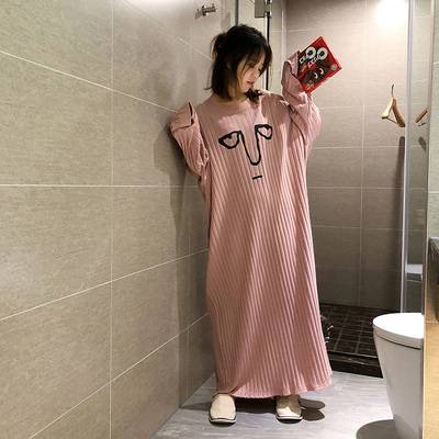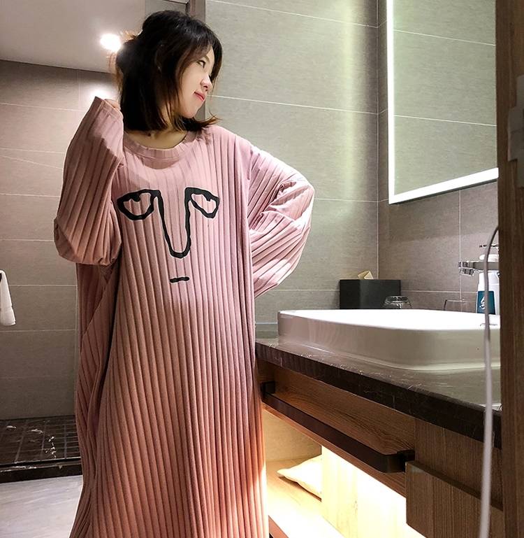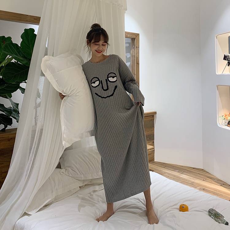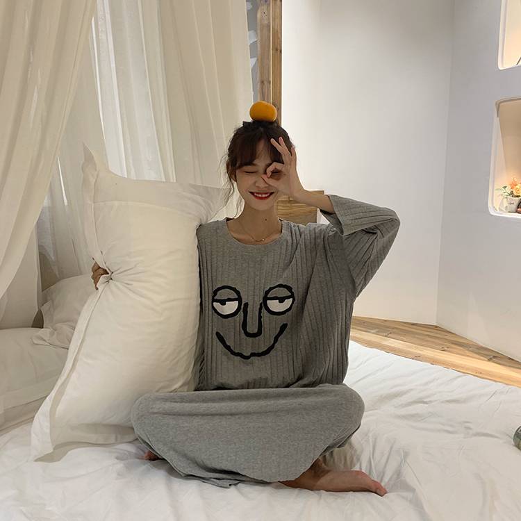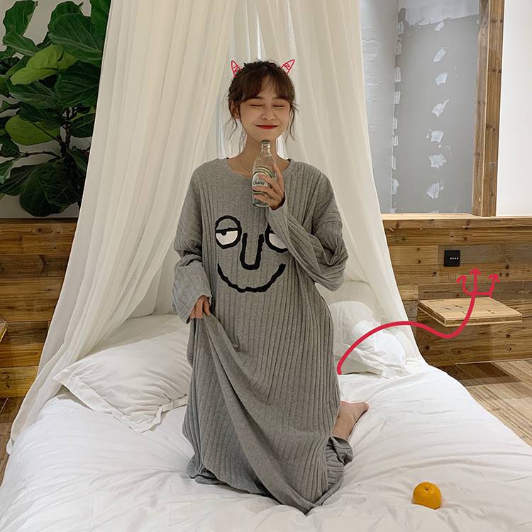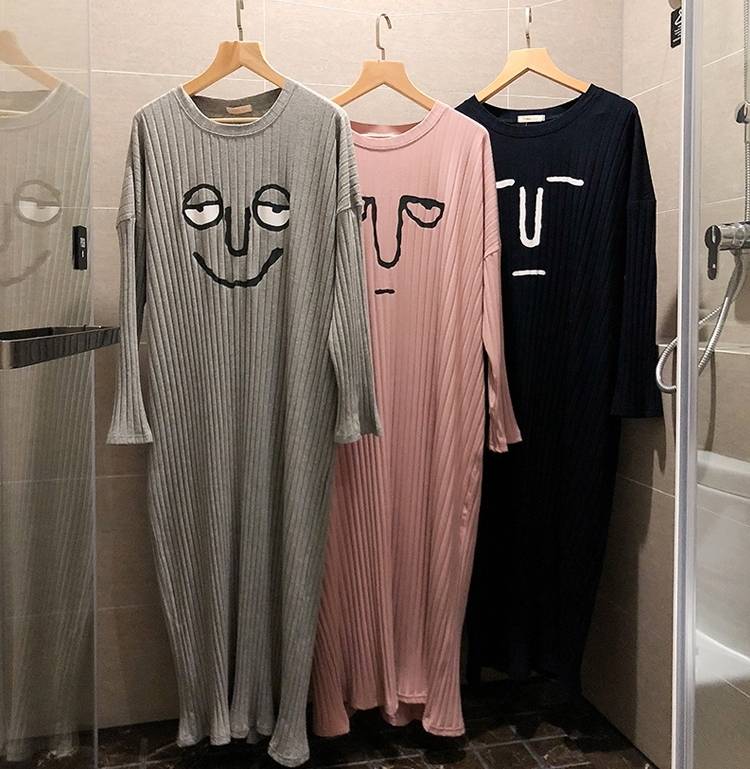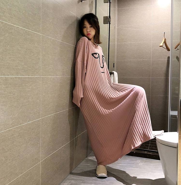 ルームウェア レディース かわいい ワンピース パジャマ 春 秋 綿 長袖 カジュアル 寝巻き 部屋着 ホームウェア 大きいサイズ xl 2xl グレー ピンク シンプル ラフ ゆ ネイビー