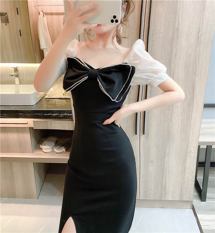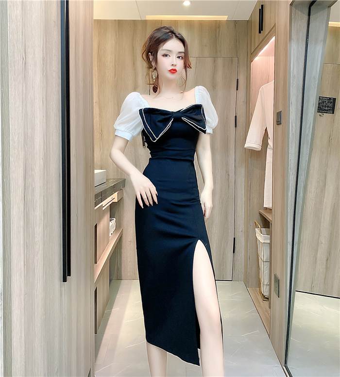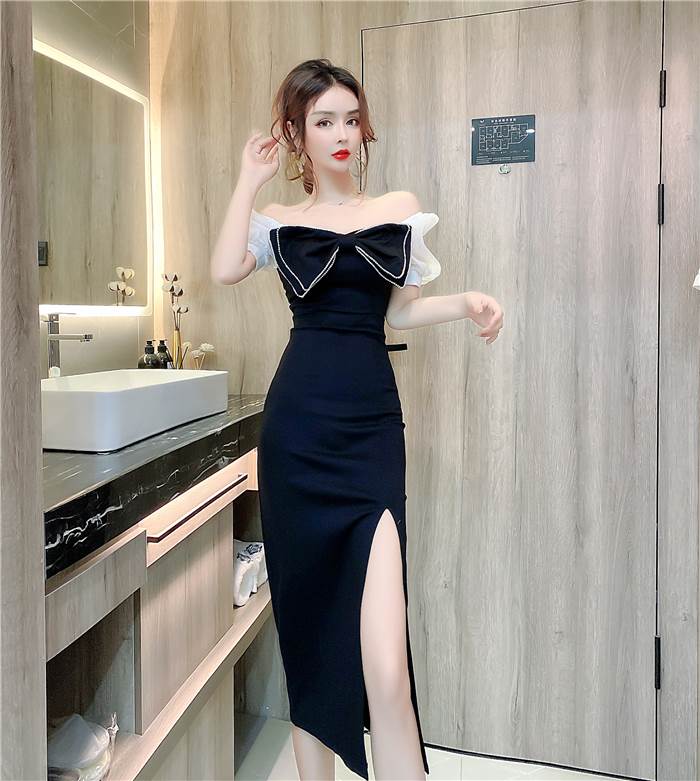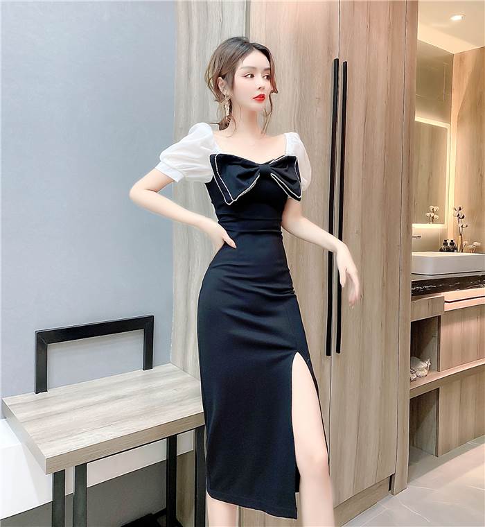 キャバ キャバ嬢 ワンピース パーティドレス キャバドレス レディース 黒 ブラック セクシー タイトワンピ リボン 大きいリボン きれいめ カッコイイ XL スリット サイドスリット 大きいサイズ