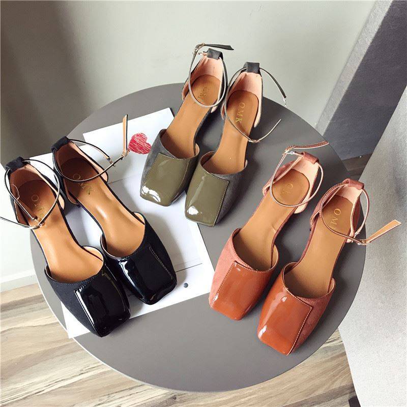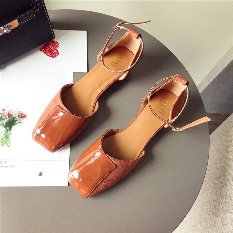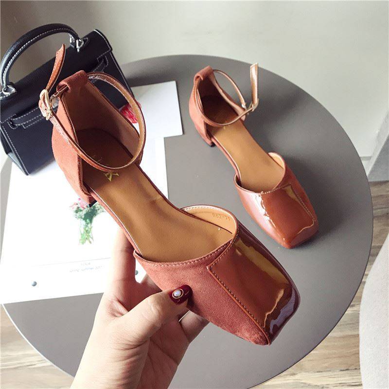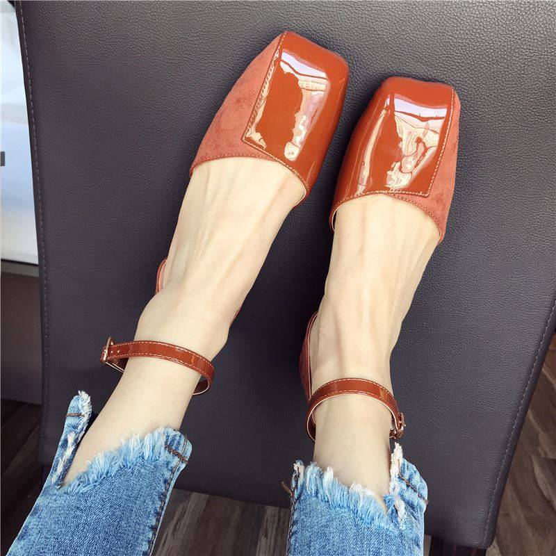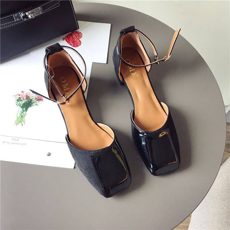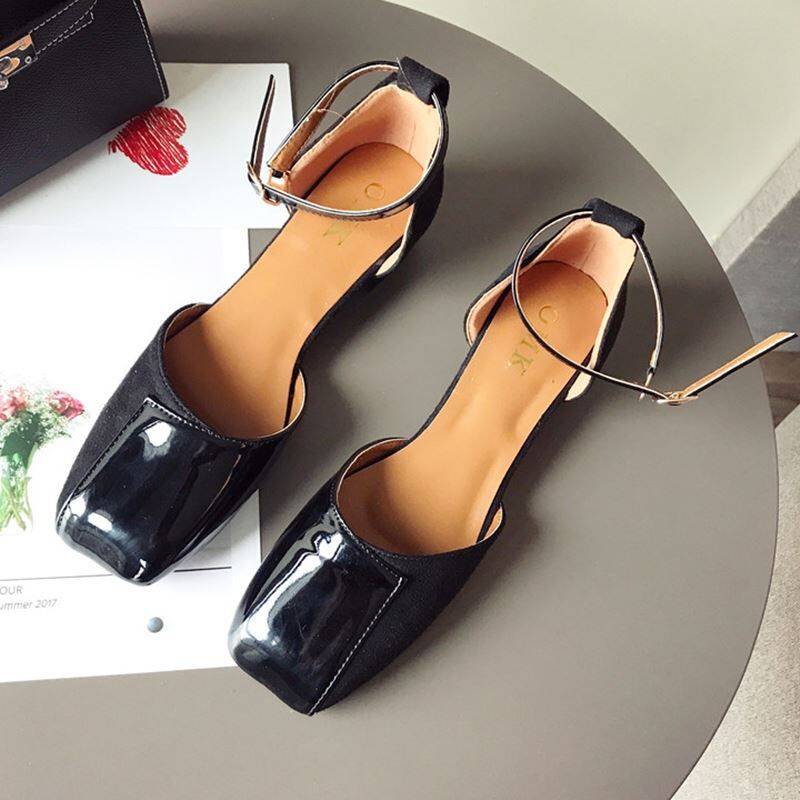 スクエアトゥにエナメルとスエードの切り替えデザインがおしゃれ☆