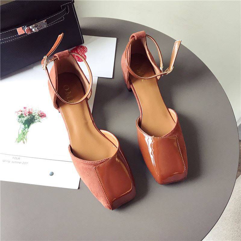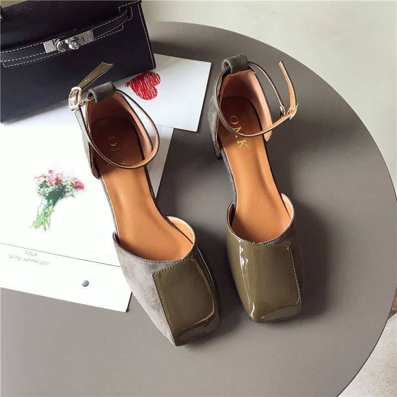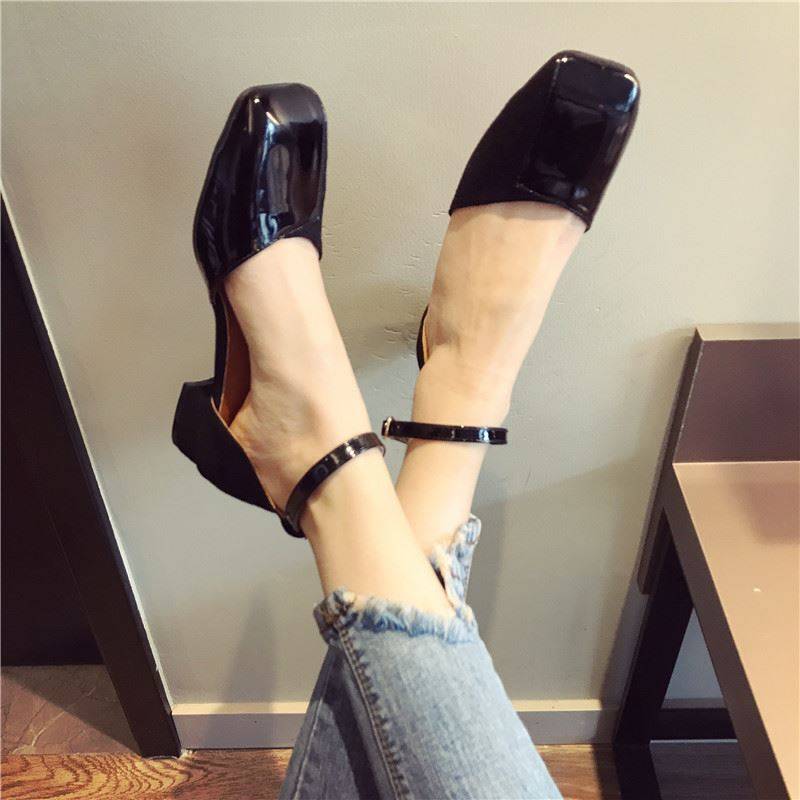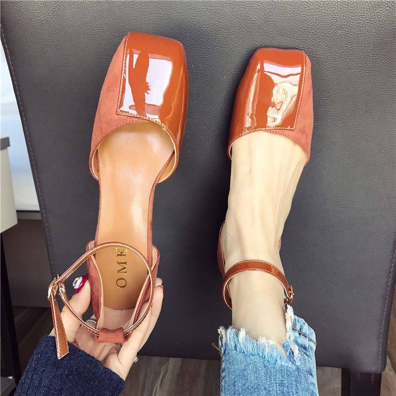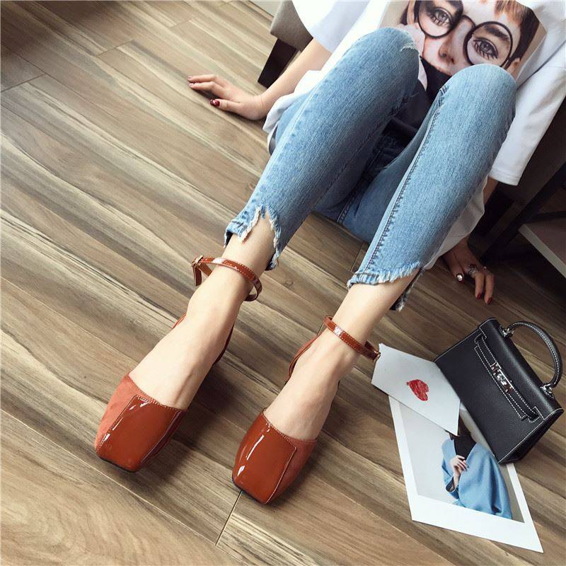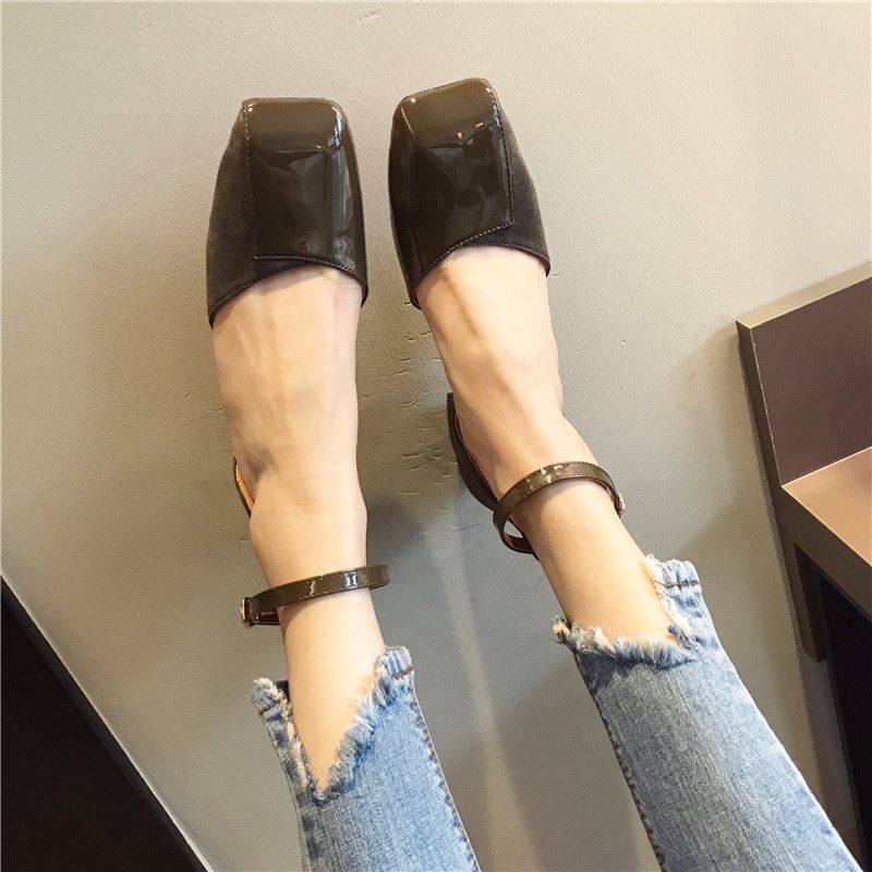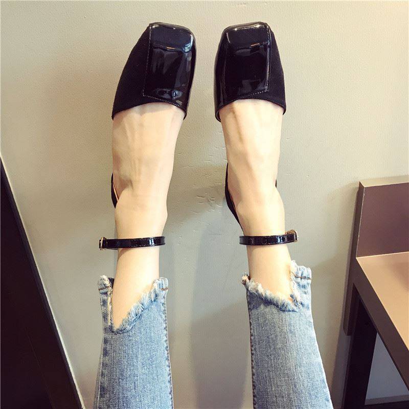 スクエアトゥにエナメルとスエードの切り替えデザインがおしゃれ☆