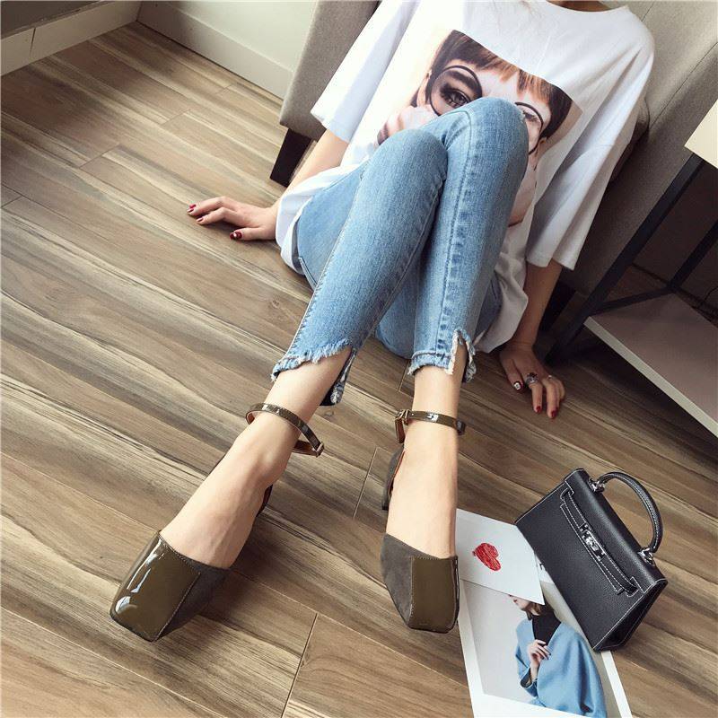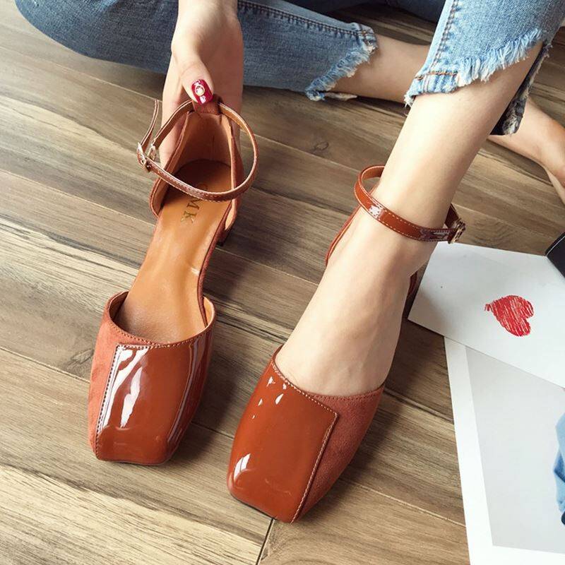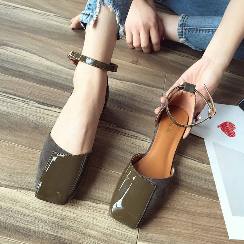 3色 パンプス レディース シューズ 靴 ストラップ ローヒール エナメル スエード 切り替え デザイン 異素材MIX おしゃれ レトロ かわいい 大きいサイズ 25.0 25.5 アンクルストラップ