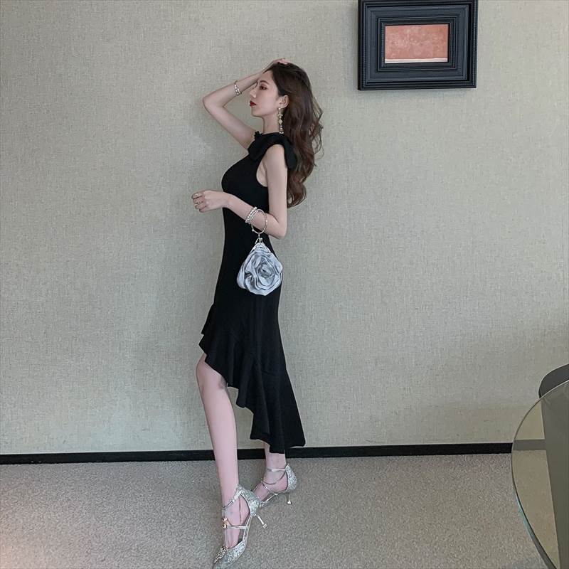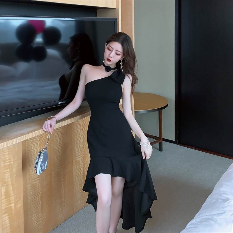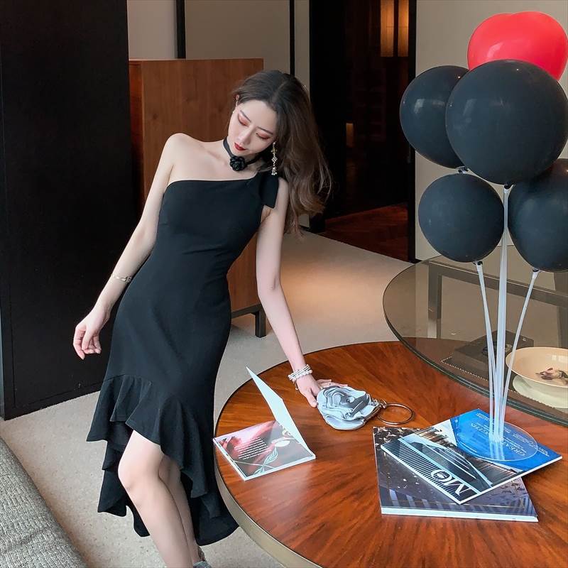 パーティードレス 黒 フィッシュテール レディースファッション 続々登場 S M L