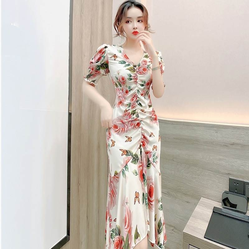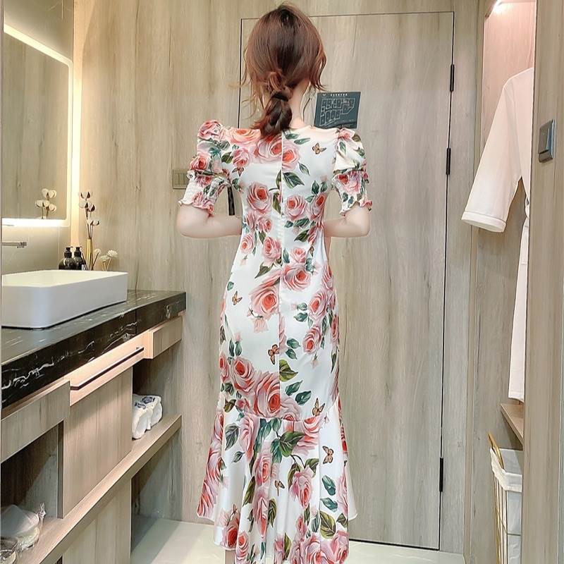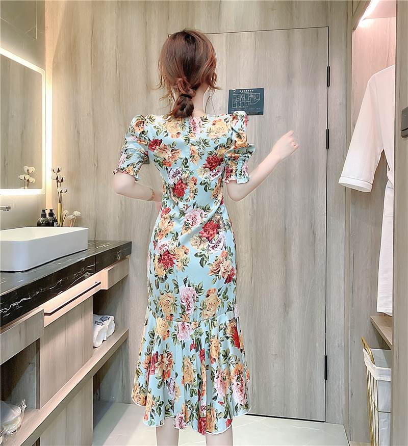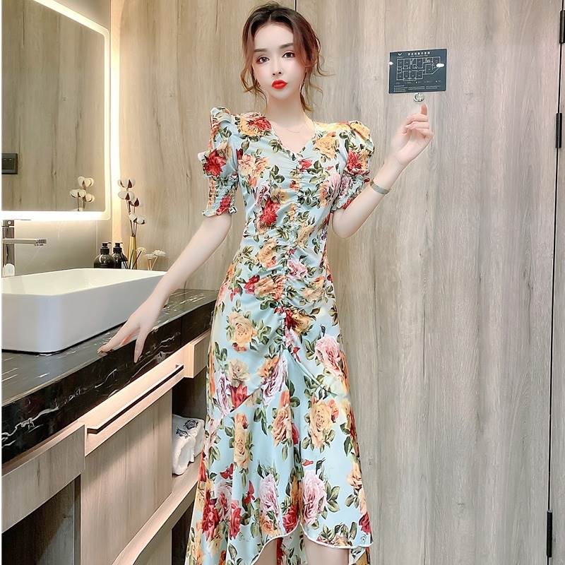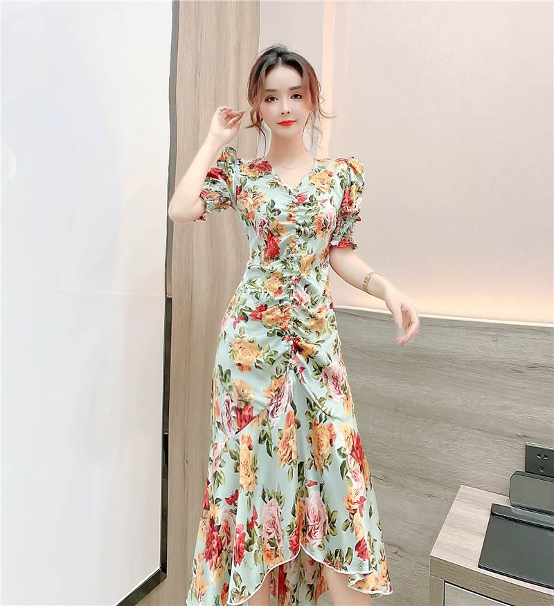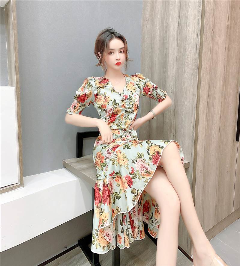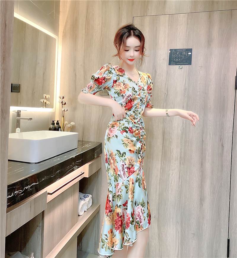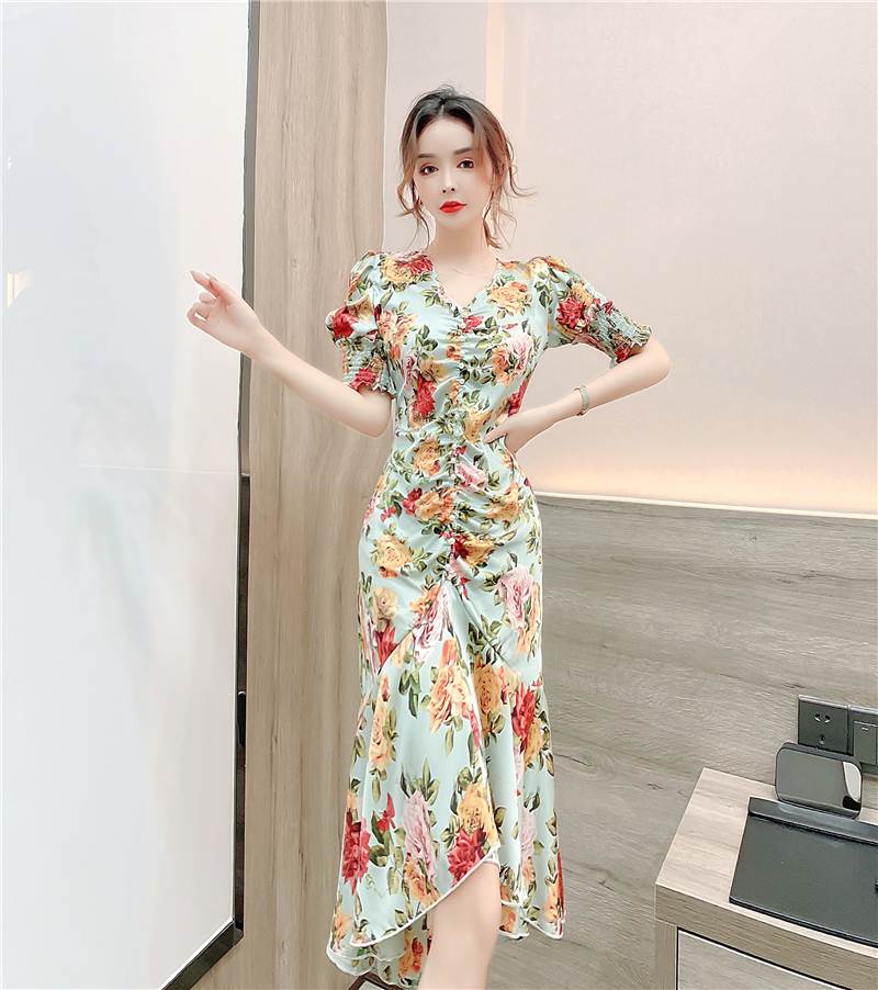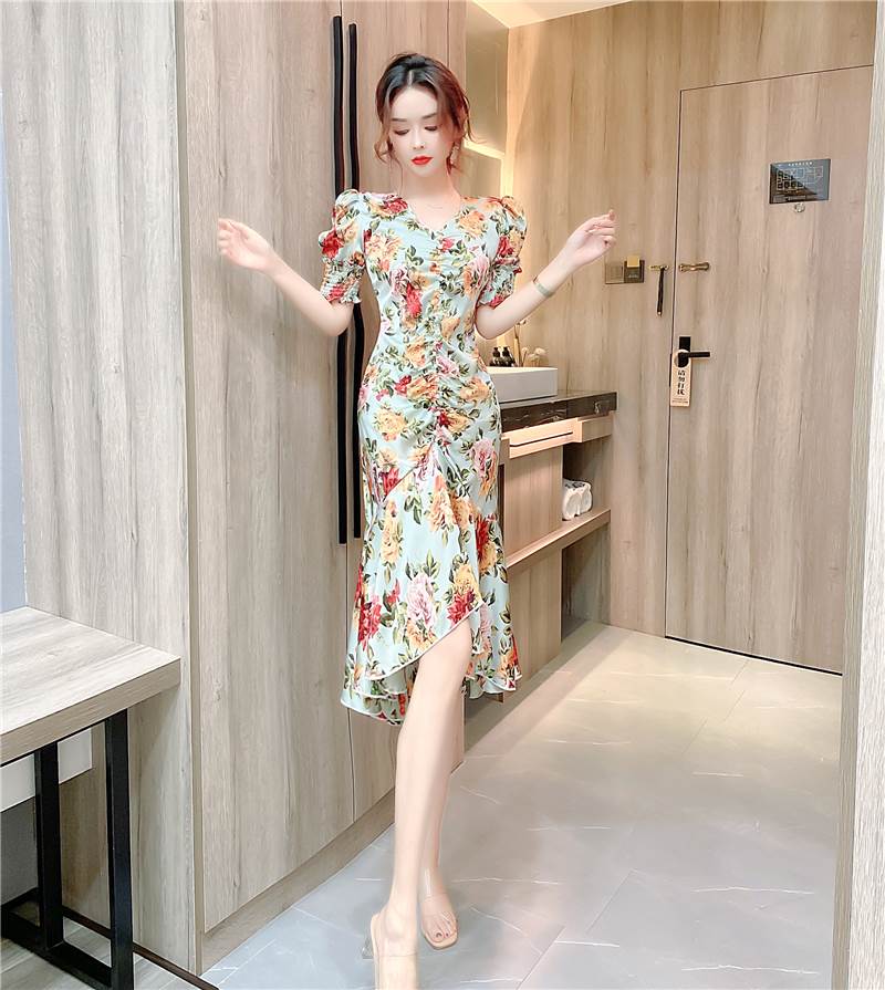 2色 キャバ ドレス 膝丈 半袖 ワンピース レディース 花柄 大人可愛い セクシー 緑 グリーン ピンク 上品 おしゃれ 可愛い カジュアル キャバクラ フィッシュテール ギャザー ワンピ