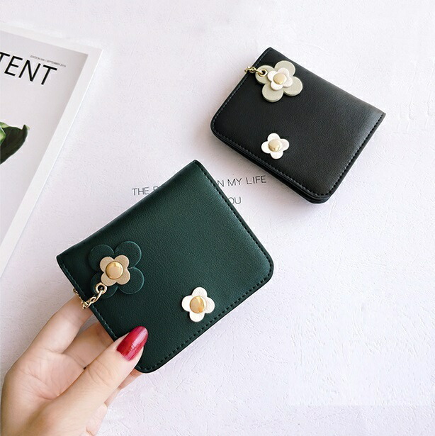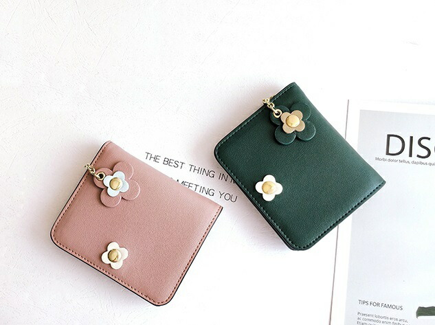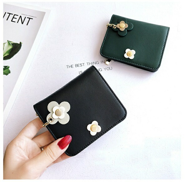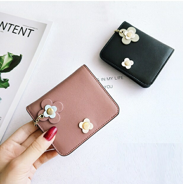 財布 レディース 二つ折り 小さめ コンパクト ミニ財布 かわいい おしゃれ お花 本革 牛革 チャーム ボタン ウォレット カード入れ 小銭入れ 誕生日 プレゼント 友達 お祝い 小さ 母の日