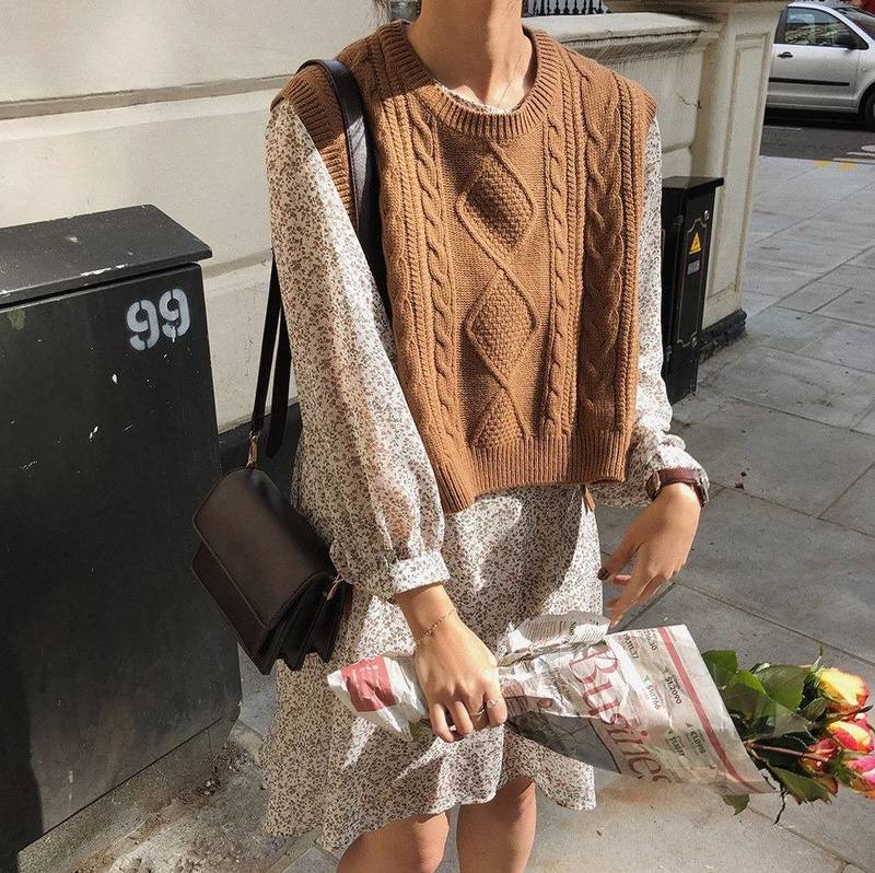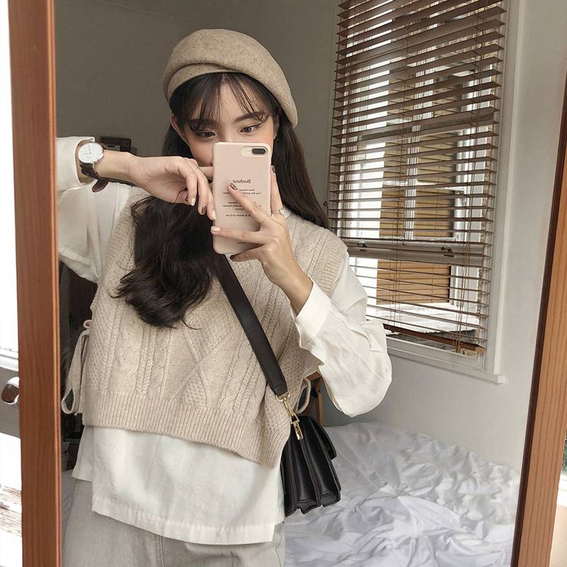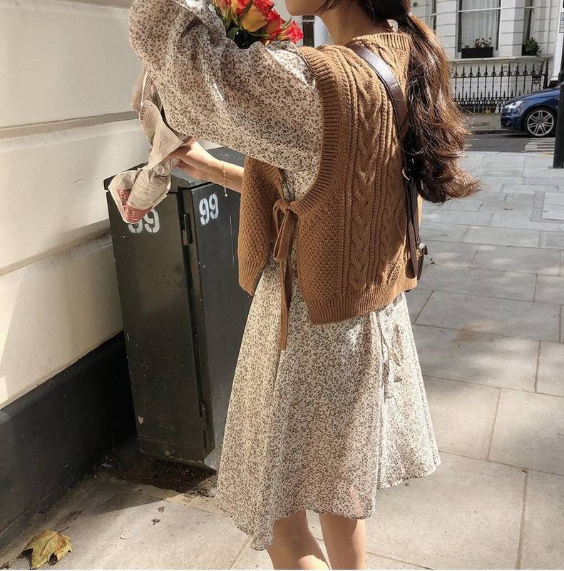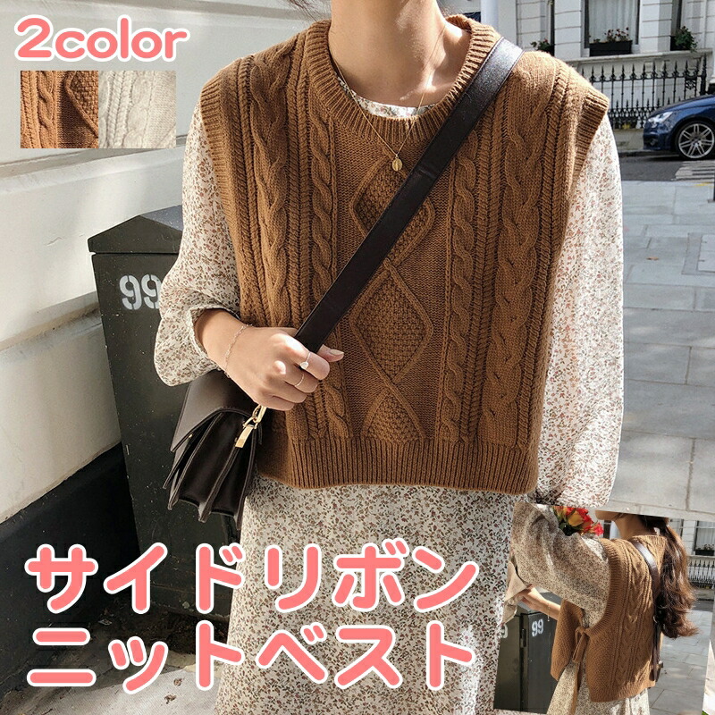 ニット ベスト レディース トップス リボン かわいい おしゃれ ショート丈 ケーブルニット レトロ ラフ ノースリーブ 重ね着 可愛い カジュアル ナチュラル 韓国 通学 学生 ブラウ ファッション
