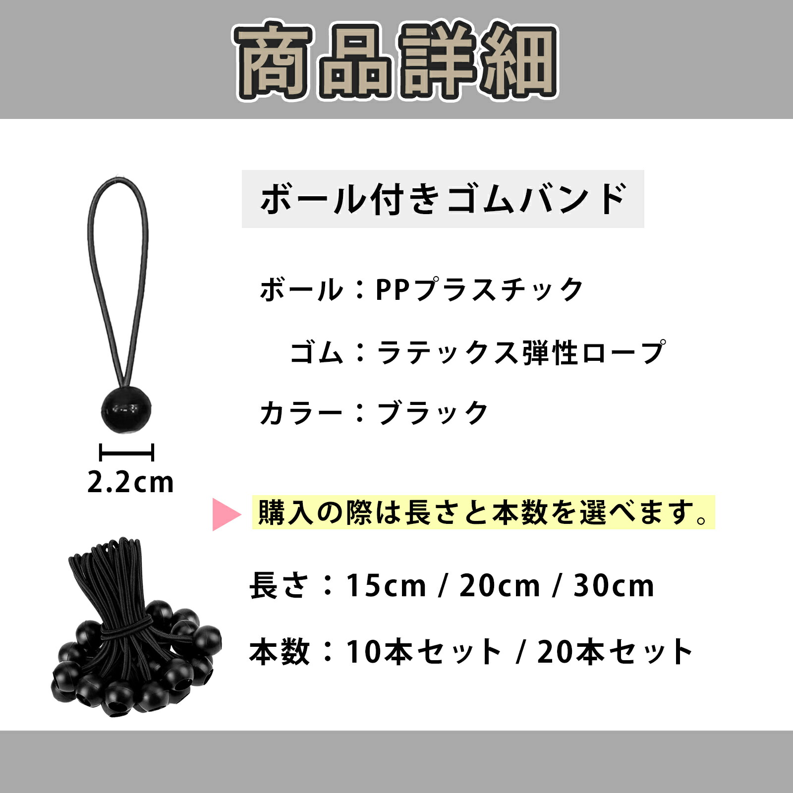 紐 ひも ヒモ ゴムバンド 軽トラ 荷物 固定 トラック 荷台シート ボール止め ゴム バンジーコード テント タープ用 ボールバンジー 黒 多目的 15cm 20cm 30cm 10個 20個 セット 大容量 まとめ買い ボール付 玉付 バンド バンジーゴム 結束 固定用 まとめ用 キャンプ アウトドア コード 軽トラ用 トラック用 荷台用 シート固定 縛る 簡単 おまとめ 結ぶ 長さ調節 カスタム カスタマイズ 用品 部品 便利 グッズ 結束バンド 結く ゴム紐 ゴムヒモ 2点セット 3点セット お揃い 送料無料 即日発送 即納 マルメロサニーディ