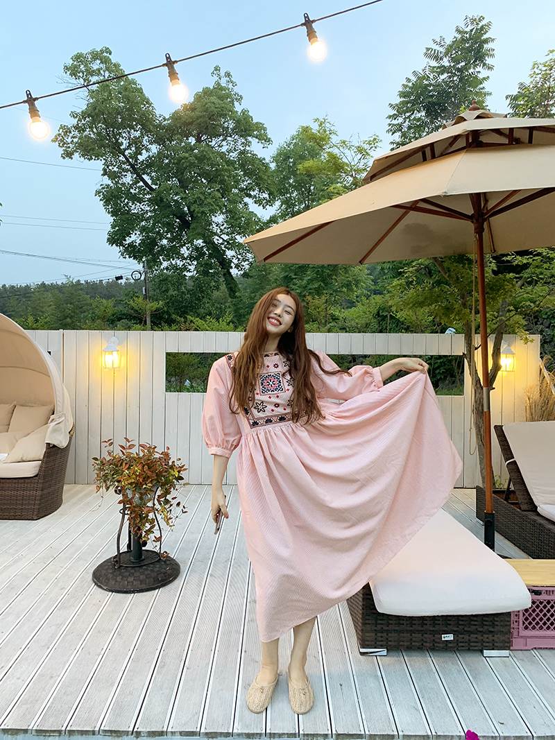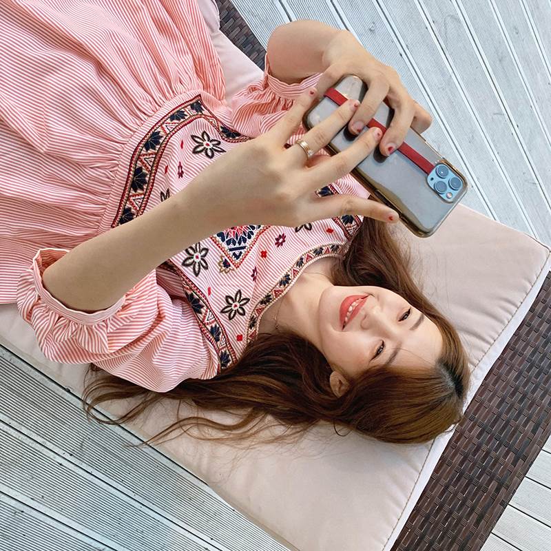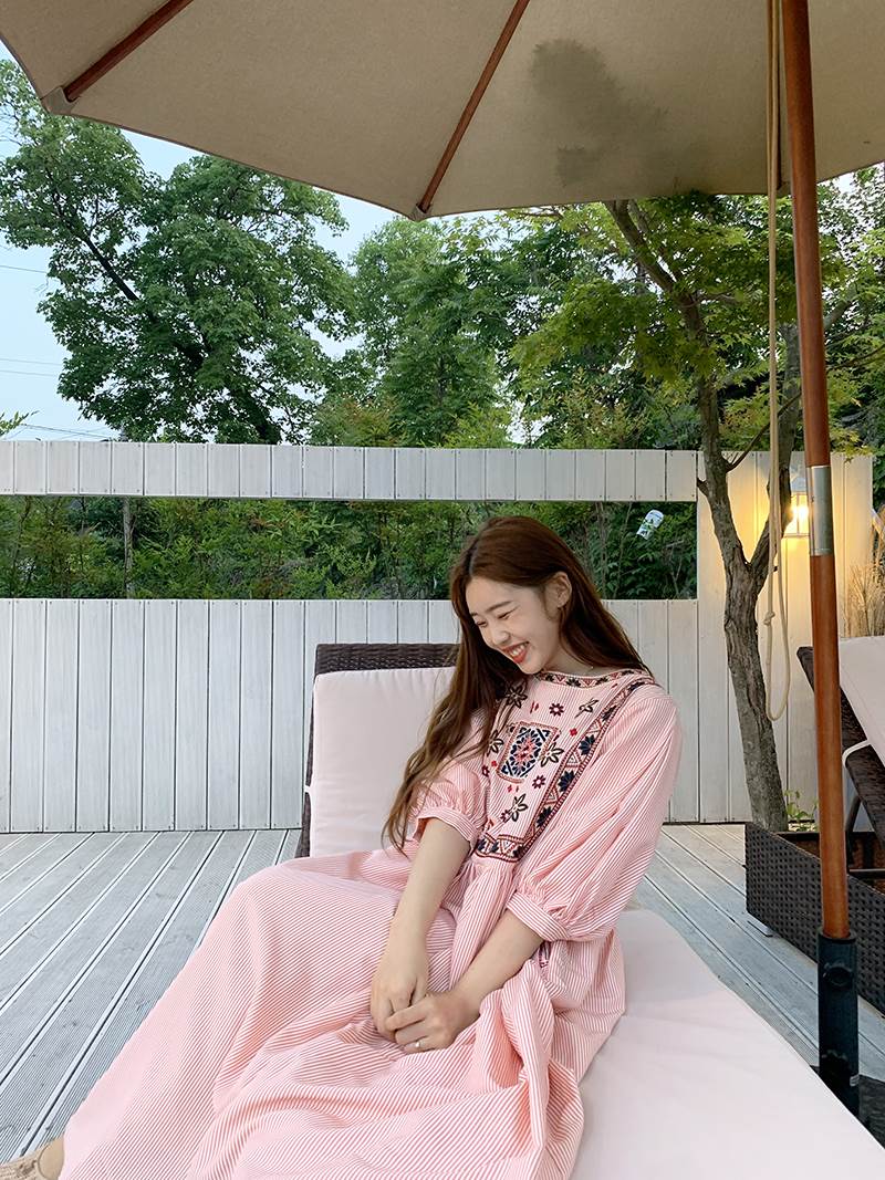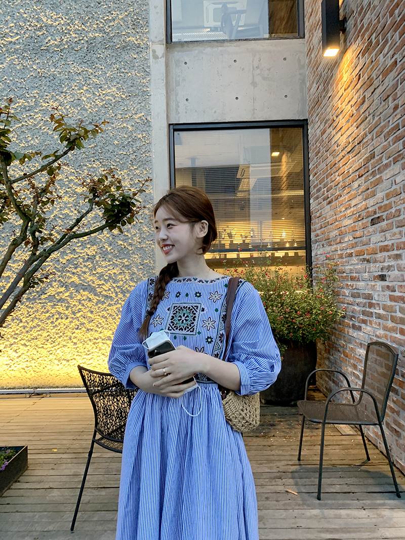 繊細なストライプとボヘミアン刺繍がレトロで可愛いシャツワンピースです。