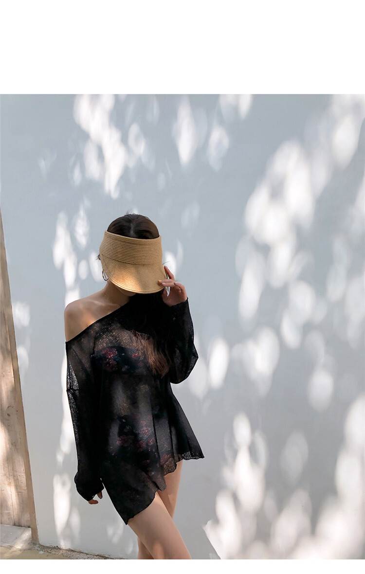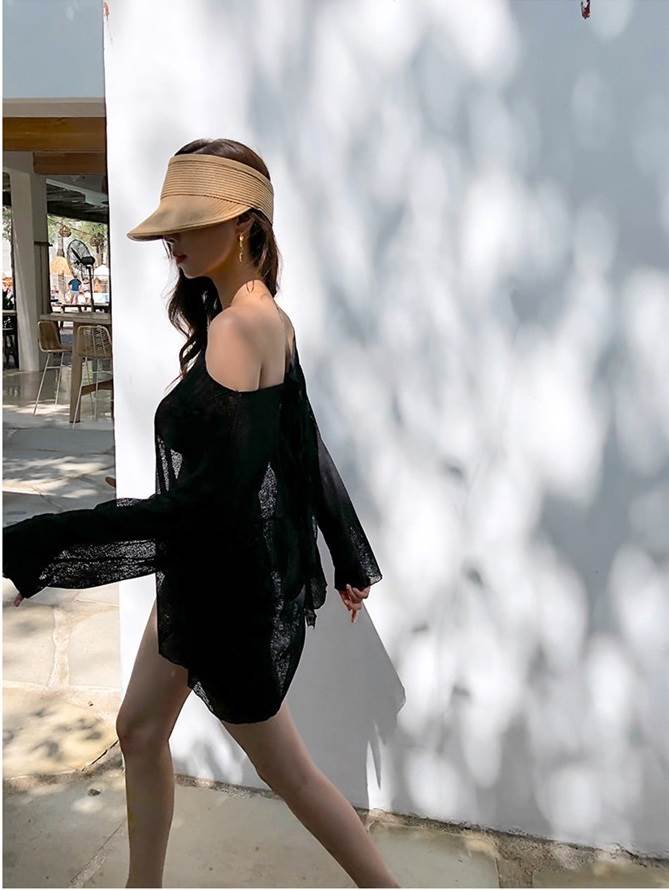 2色 バックリボン トップス 羽織 プルオーバー 海 リゾート コーデ リボン ブラウス セクシー ゆったり 透け感 黒 白 無地 日焼け防止 水着 上着 バックシャン かっこいい 長袖 ビ 背中開き