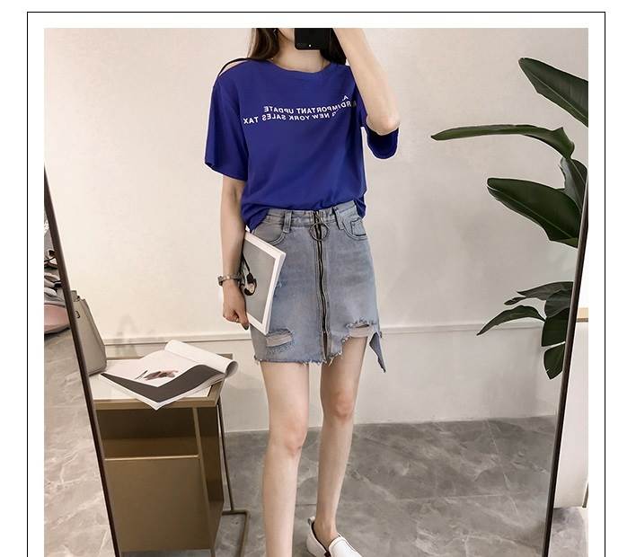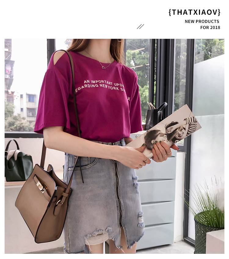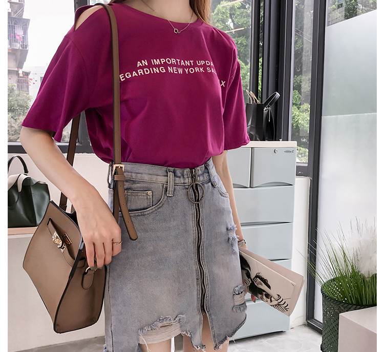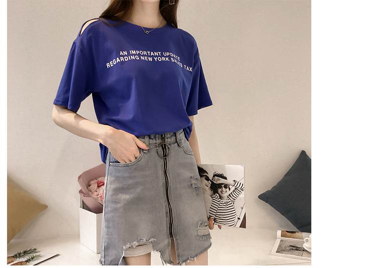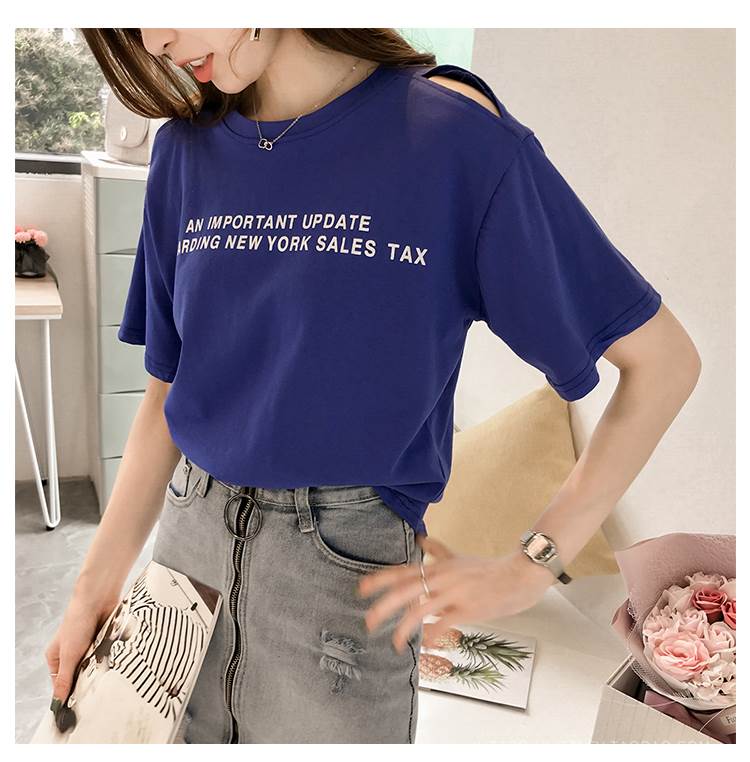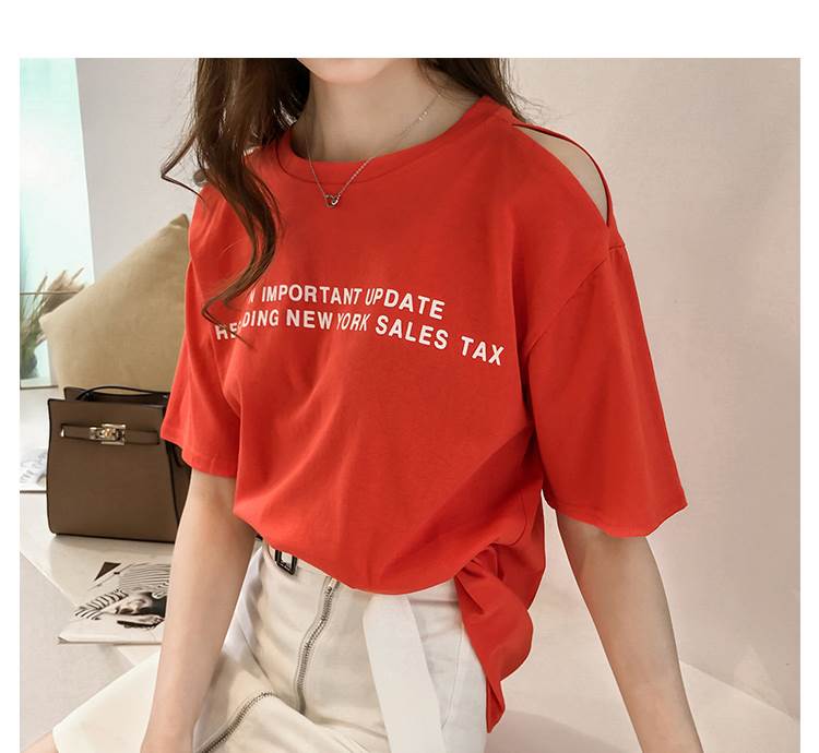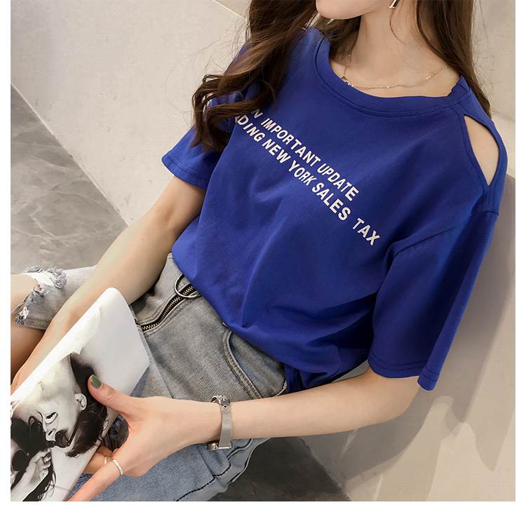 4色 Tシャツ レディース オフショル 肩出し トップス 春 夏 カジュアル カッコイイ ラフ キュート 個性的 半袖 ロゴ パープル ホワイト オレンジ ブルー 紫 白 大きいサイズ XL 2X 青