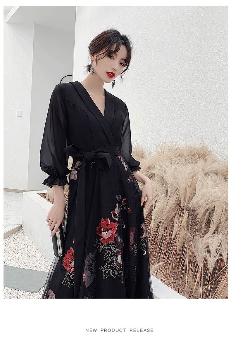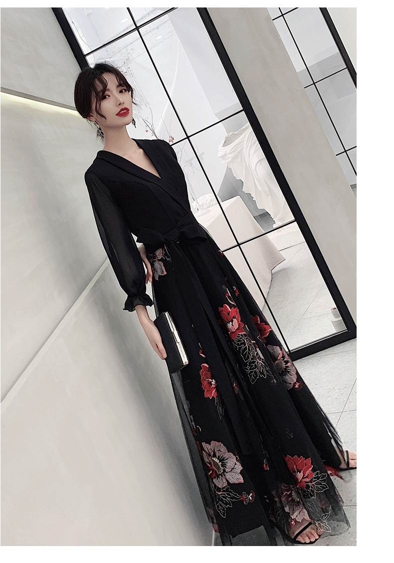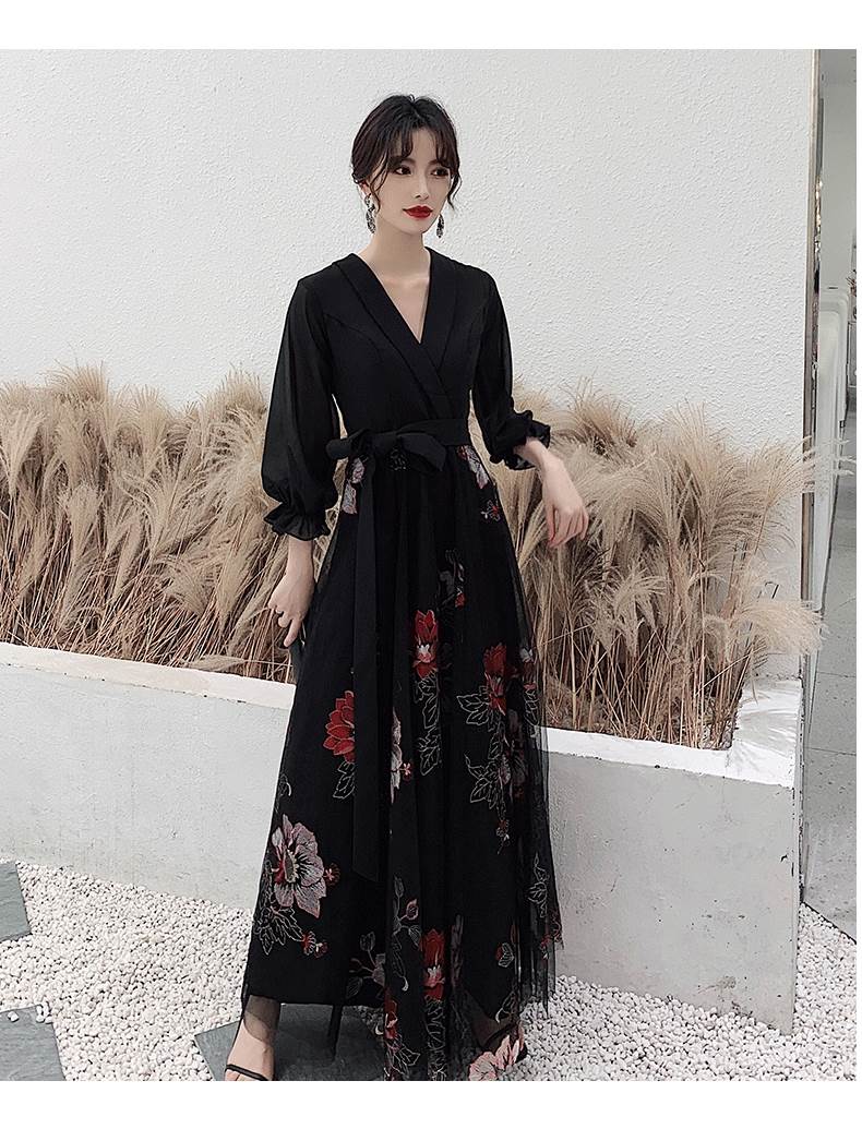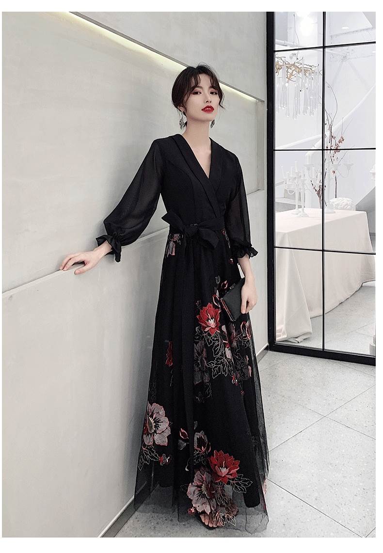 今だけ6980円 パーティードレス かっこいい 個性的 ロング 黒 袖あり 花柄 レース 大きいサイズ きれいめ 透け感 長袖 韓国 演奏会 ロングドレス フォーマル 二次会 お呼ばれ ドレ 結婚式