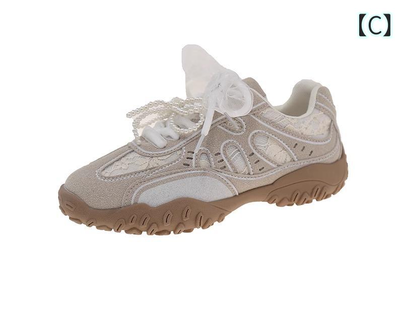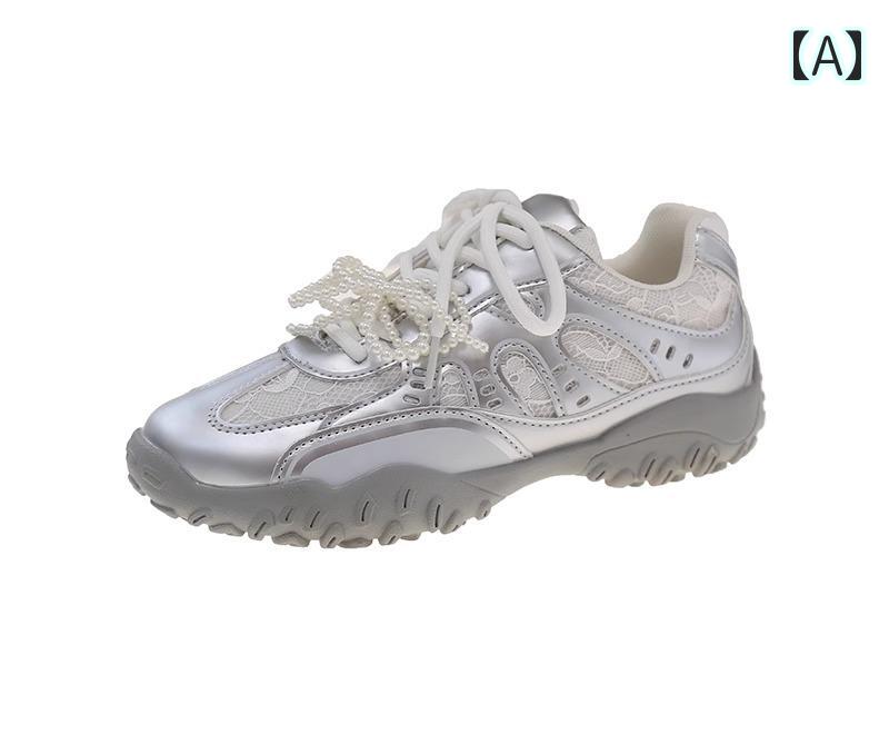 スニーカー レース パール 可愛い 個 靴 通販 A:シルバー B:ホワイト C:アプリコット 22.5 23 23.5 24 24.5 25