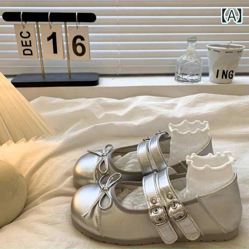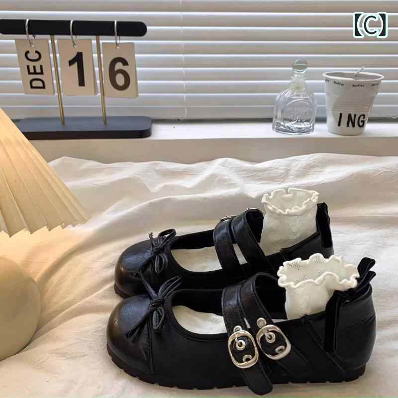 ローファー パンプス ぺたんこ 浅口 可愛い フラット バレエシューズ 韓国系 黒 白 シルバー リボン ダブルベルト ラウンドトゥ フレンチレトロ お嬢様 姫系 ガーリー 革靴 個性的 フ ラブリー