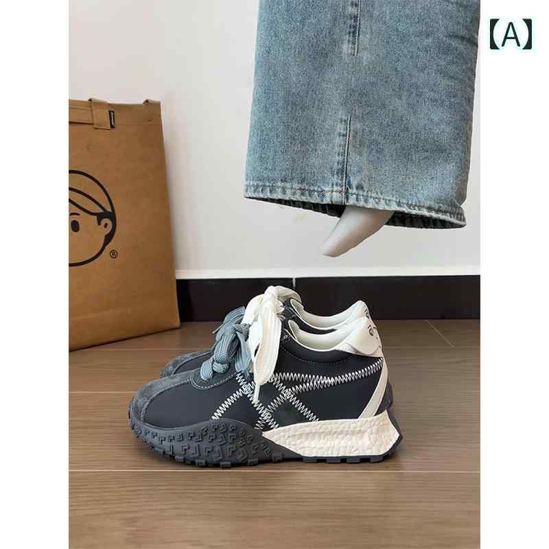 スニーカー レトロ 可愛い バイカラー レディース靴 スニーカー 通販 A:ダークグレー B:ホワイト 22 22.5 23 23.5 24 24.5