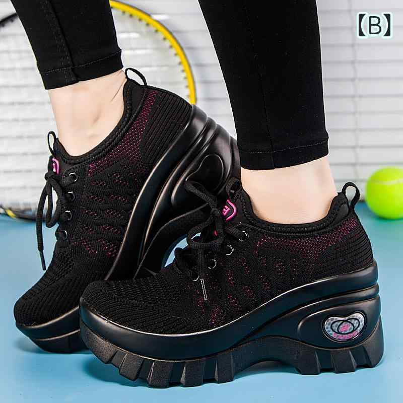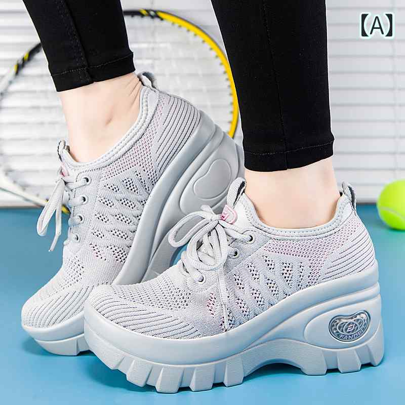 8cm 厚底 スニーカー メッシュ 通 靴 人気 A:ライトグレー B:ブラック 22.5 23 23.5 24 24.5 25