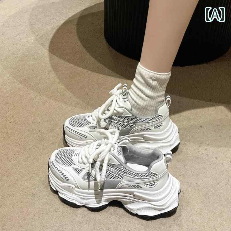 ダッドスニーカー 白 メッシュ 可愛い 靴 人気 A:オフホワイト B:シルバー 22.5 23 23.5 24 24.5 25
