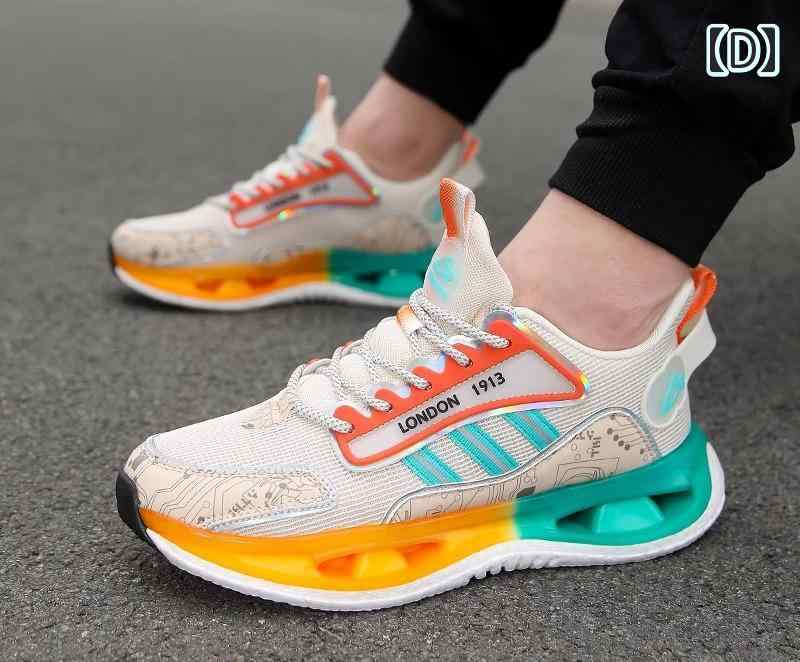 ランニング スニーカー メンズ レディース 個性的 韓国系 カラフル 軽量 快適 メッシュ 通気性 運動靴 白 緑 オレンジ ピンク 黒 ユニーク柄 切り替えデザイン エアクッション 衝撃 バイカラー
