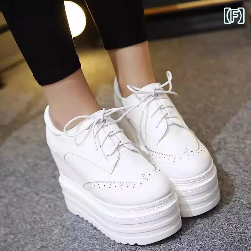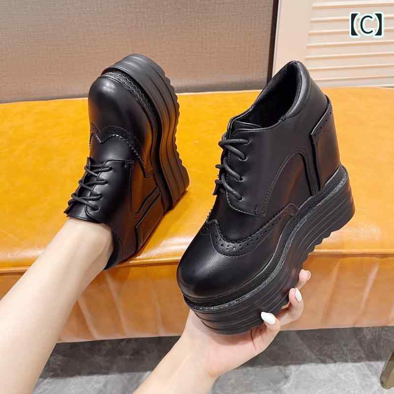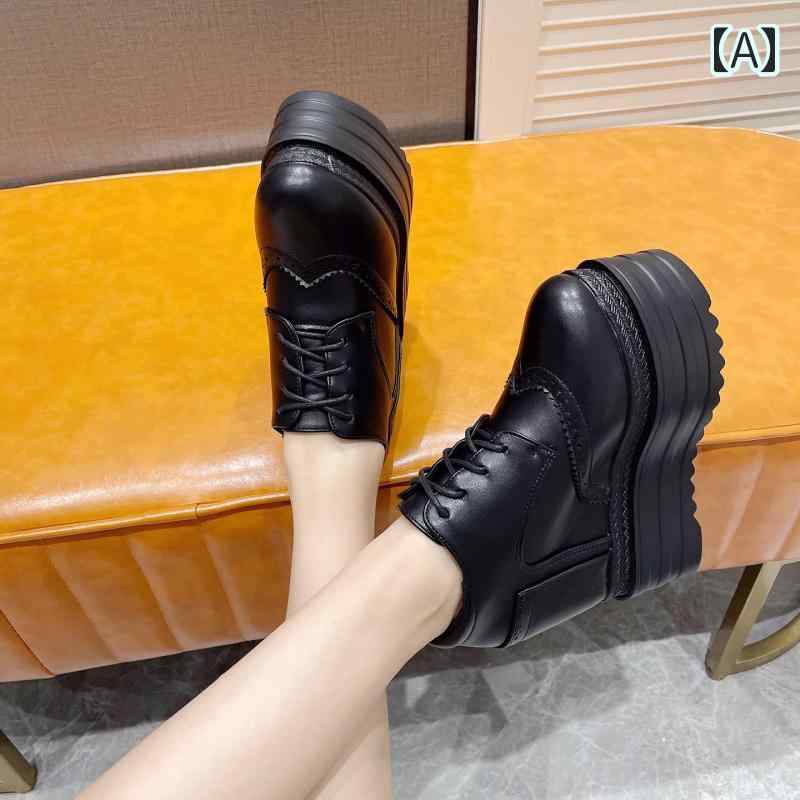 14cm 超厚底 ブーティ スニーカー ブーツ 黒 白 韓国系 かっこいい ハイヒール 高ヒール レザーブーツ 身長アップ 脚長 ハイカット レースアップ 革靴 スタイルアップ ブラック ホワ 個性的