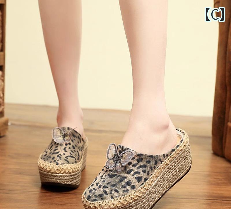 厚底 サボサンダル ミュール 蝶 ちょ メンズ靴 サンダル その他 新登場! A:ベージュ 5.5CM B:ブラック 5.5CM C:ヒョウ柄 5.5CM D:ベージュ 3.5CM E:ブラック 3.5CM F:ヒョウ柄 3.5CM 22.5 23 23.5 24 24.5 25