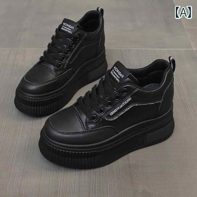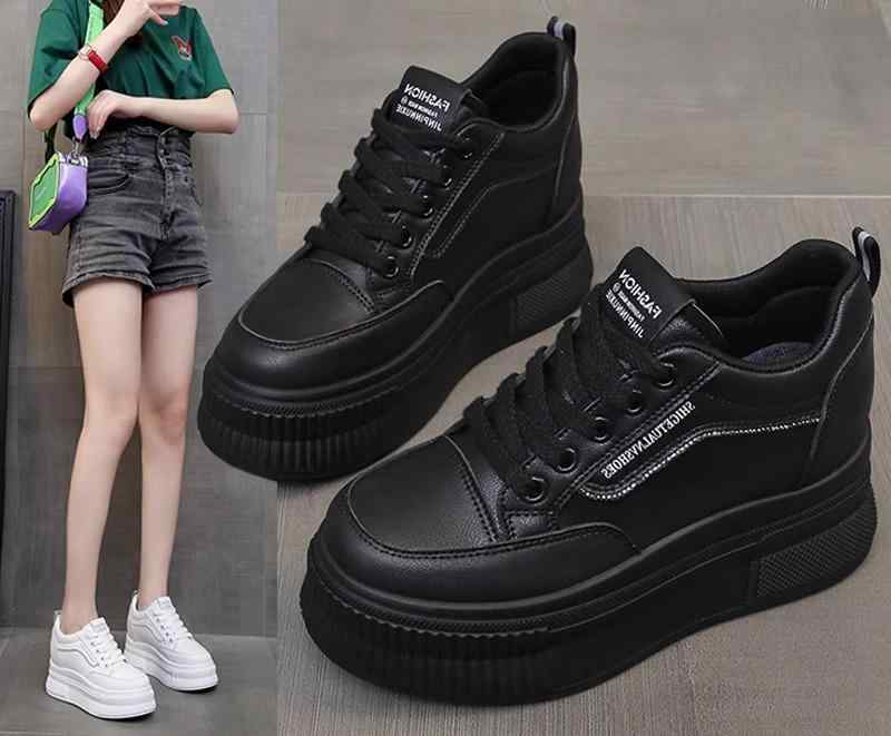 8cm 超厚底 スニーカー 黒 白 かっこいい ウェッジソール 運動靴 身長アップ 脚長 韓国系 レディース レザースニーカー ブラック ホワイト 合皮 撥水 女子 スタイルアップ シンプ オルチャン