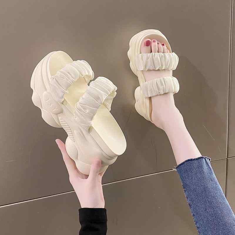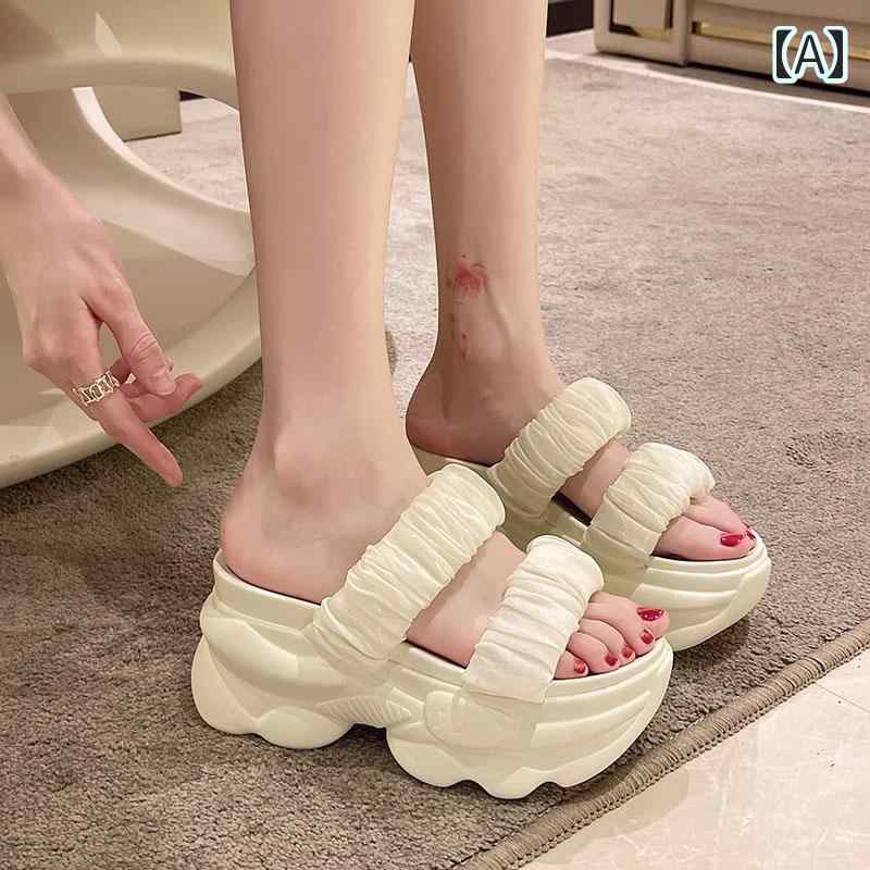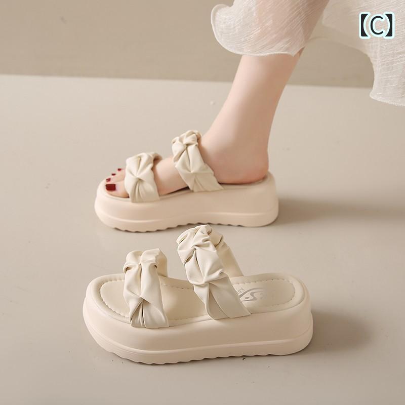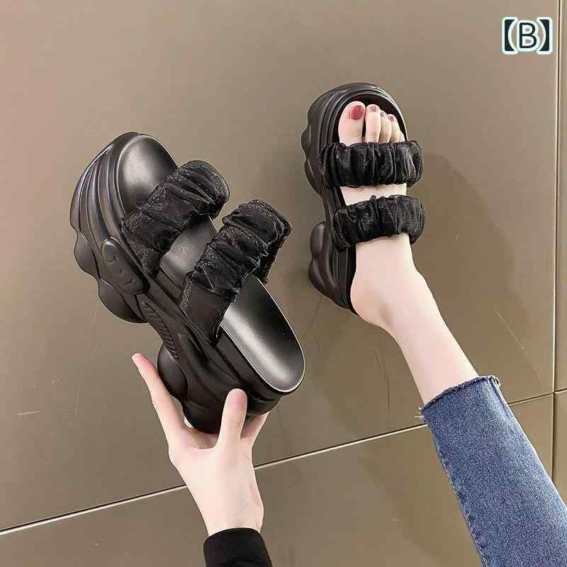 厚底 ビーチサンダル 黒 白 ウェッジソール 可愛い サンダル 韓国系 スポサン 身長アップ 脚長 くしゅくしゅ シュシュ風 ごつ可愛い 白サンダル 黒サンダル ギャザー 春夏 シューズ サ シンプル