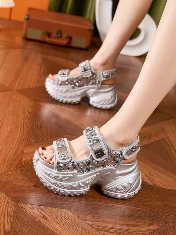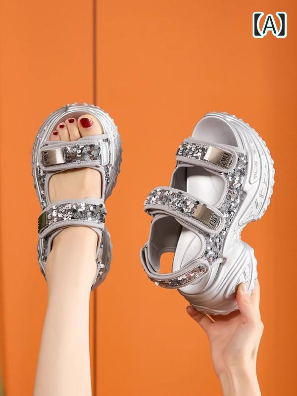 厚底 スポーツサンダル キラキラ スパ 靴 人気 A:シルバー B:ブラック 22 22.5 23 23.5 24 24.5 25