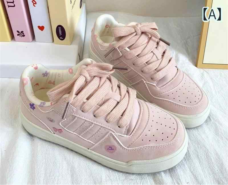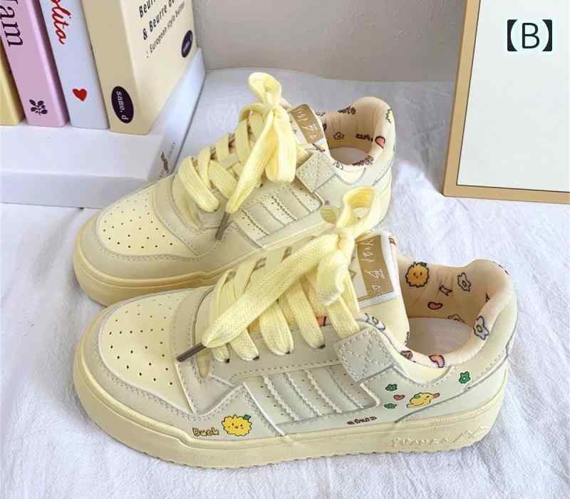 スニーカー 花柄 黄色 イエロー ピンク 可愛い 春スニーカー ぽってり 丸み フラット 運動靴 厚底スニーカー レディース 韓国系 幼い キュート かわいい フラワー リボン キャラクター レトロ