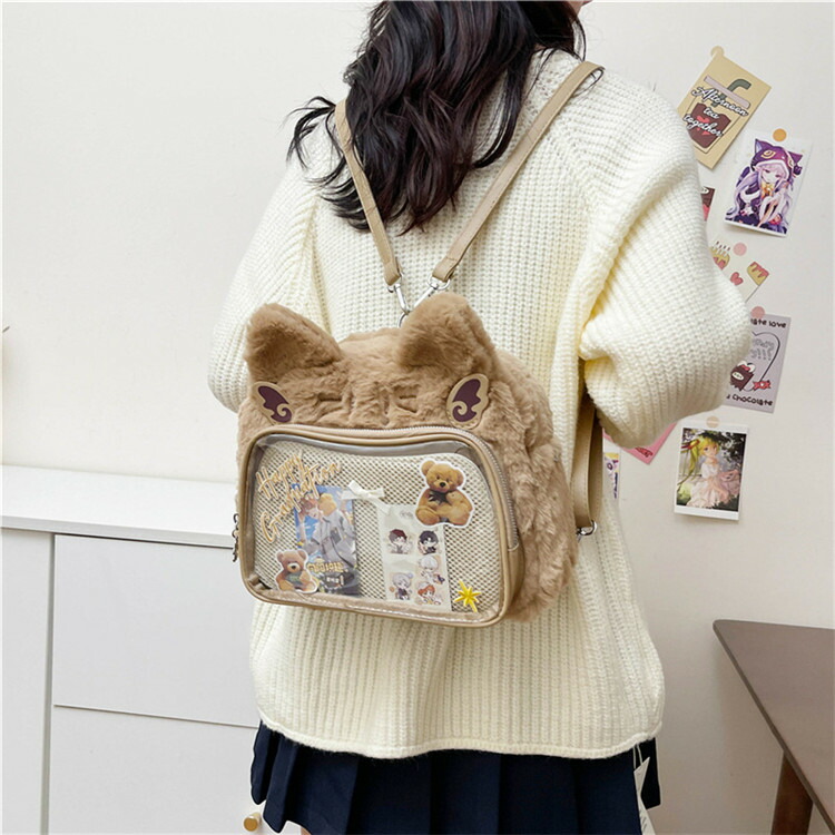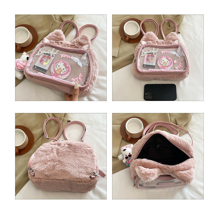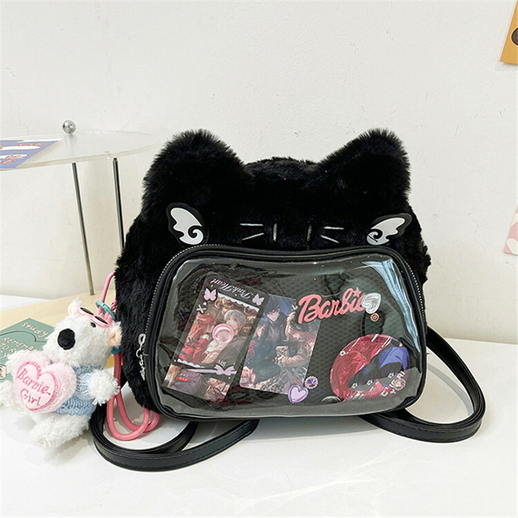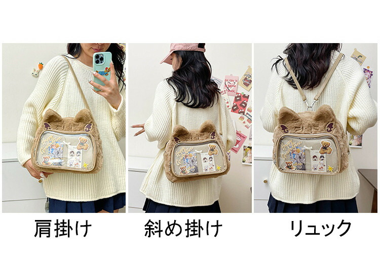 推し 推しバッグ かわいい 猫柄 痛バッグ 痛バ ショルダー 猫 2wayバッグ リュック ショルダーバッグ レディース オタクバッグ オタク オタク活 透明窓 クリアバッグ ビニールバッグ イベント