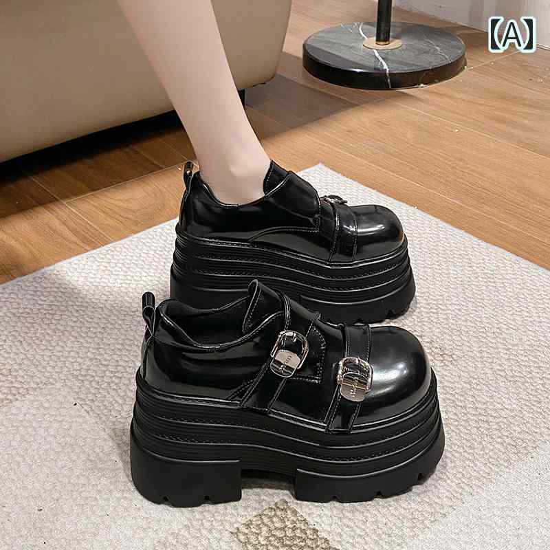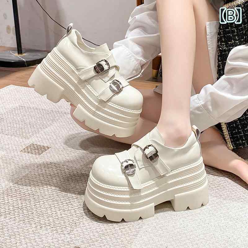 10cm 超厚底 ローファー ブーツ 韓国系 ウェッジソール 黒 白 茶色 合皮 レザーシューズ スリッポン 英国風 ラブルベルト 個性的 かっこいい 革靴 JK 大学生 韓国女子 コスプレ 高校生
