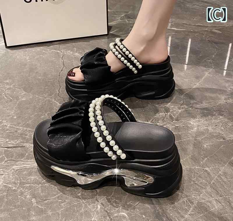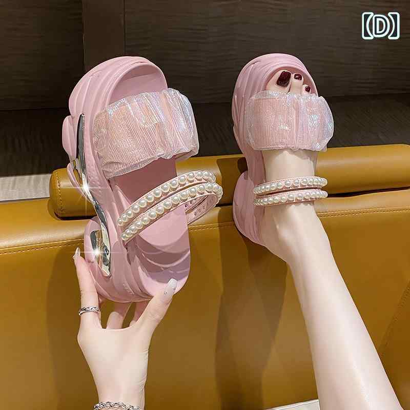 厚底 サンダル スリッパ パール メタ レディース靴 サンダル スポーツサンダル 特集 A:オフホワイト B:ブルー C:ブラック D:ピンク 22 22.5 23 23.5 24 24.5