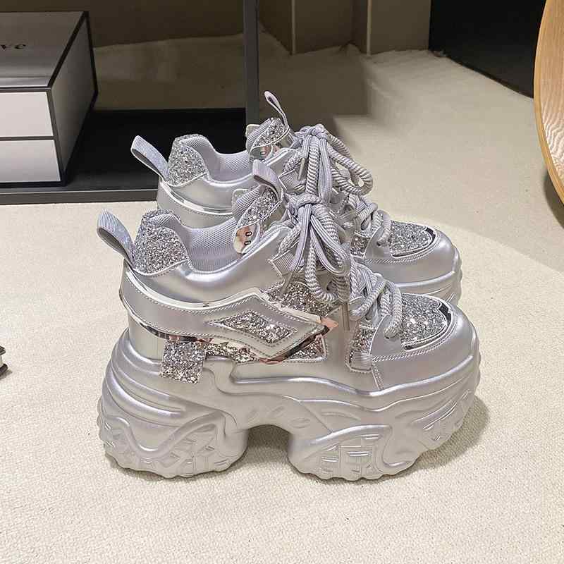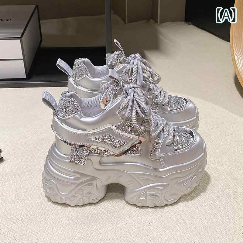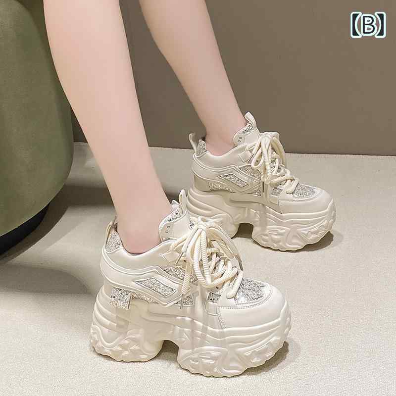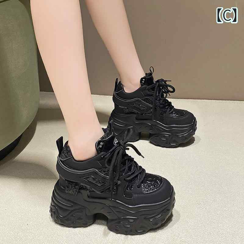 11cm 超厚底 ダッドスニーカー ハ レディース靴 スニーカー 通販 A:シルバー B:オフホワイト C:ブラック 22 22.5 23 23.5 24 24.5