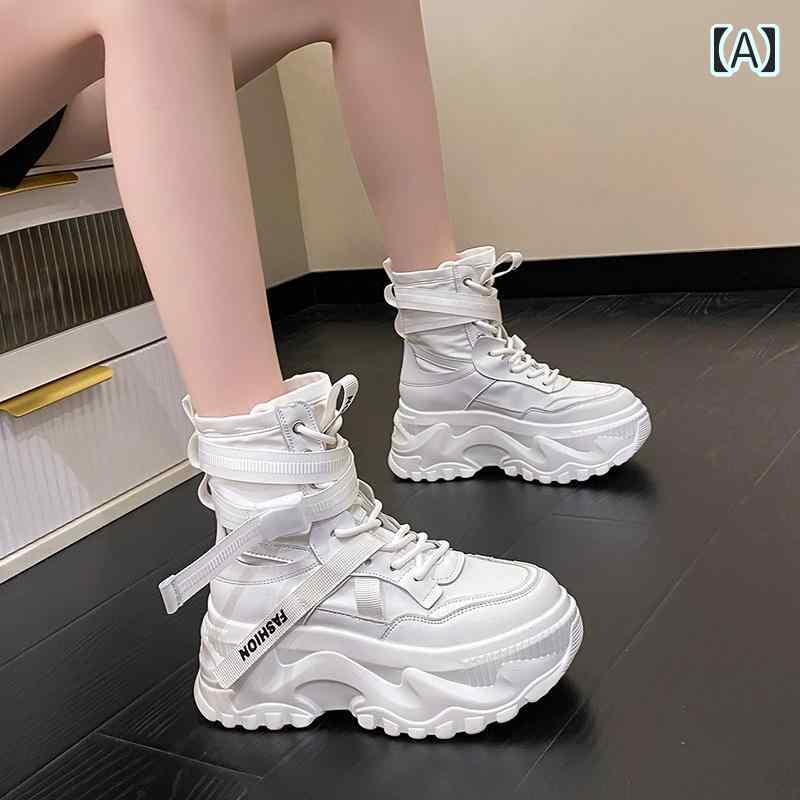 ハイカット ダッドスニーカー 黒 白 個性的 ショート丈 ブーツ スニーカー 韓国系 厚底 運動靴 かっこいい ロック パンク 編み上げ レースアップ ハイテクスニーカー 通学 学校 おしゃれ 大学生