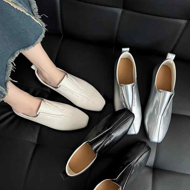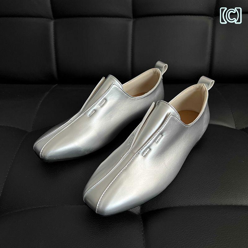 ローファー かっこいい フレンチレトロ レディース靴 ローファー 豊富な品揃え A:ブラック B:オフホワイト C:シルバー 22.5 23 23.5 24 24.5 25
