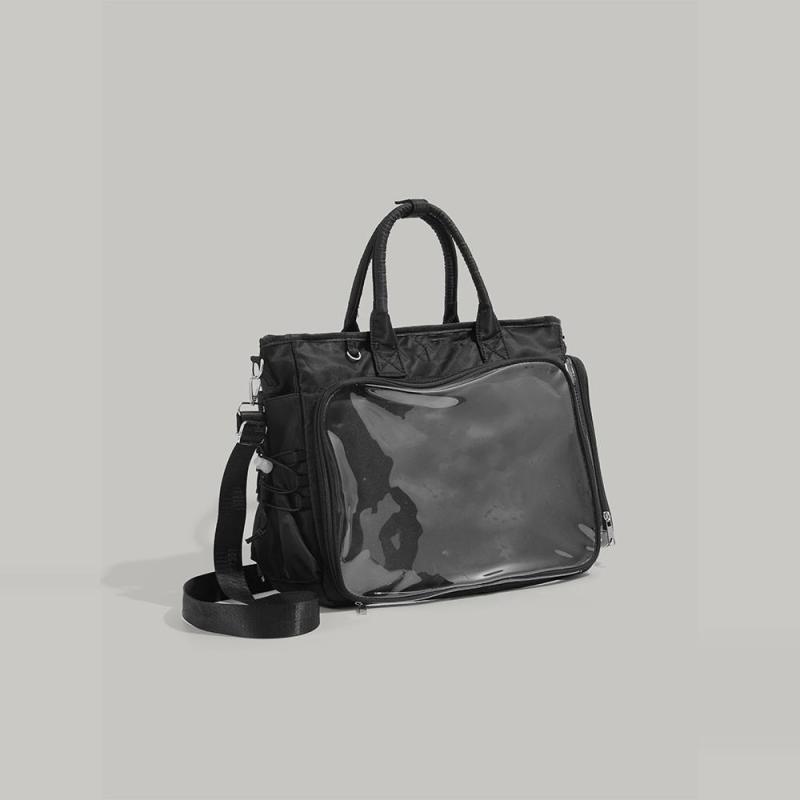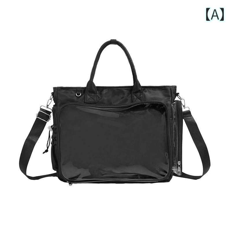 トートバッグ ショルダーバッグ 痛バッグ 黒 大容量 スクエア型 便利 使いやすい 多機能 レディース メンズ 3way リュック ブラック 無地 推し活 痛バック クリアポケット 人形 ぬいぐ 透明