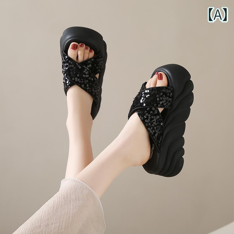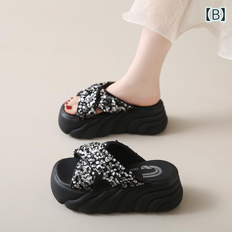 スパンコール サンダル クロスデザイン レディース靴 サンダル ビーチサンダル 豊富な品揃え A:ブラック B:シルバー 22 22.5 23 23.5 24 24.5