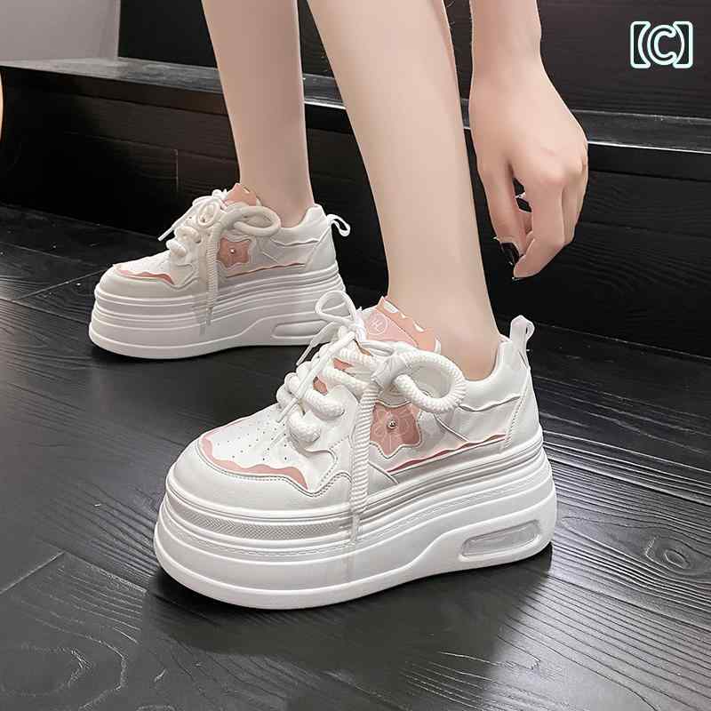 白スニーカー 超厚底 6cm 韓国系 レディース靴 スニーカー 通販 A:ホワイト B:ブラック C:ピンク 22 22.5 23 23.5 24 24.5