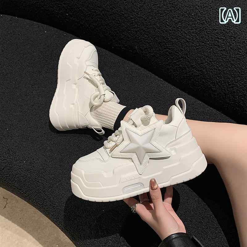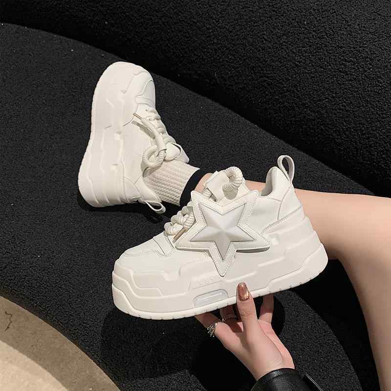 6cm 厚底 スニーカー 星型 スター 可愛い 白スニーカー 黒スニーカー 韓国風 レディース 運動靴 超厚底 ハイヒール 身長アップ 脚長 黒 白 ベーシック 個性的 キュート 厚底靴 人 かわいい