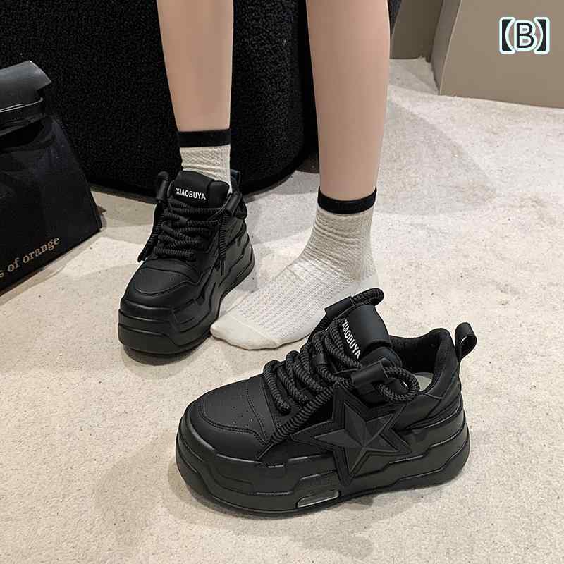 6cm 厚底 スニーカー 星型 スター 靴 特集 A:オフホワイト B:ブラック 22 22.5 23 23.5 24 24.5