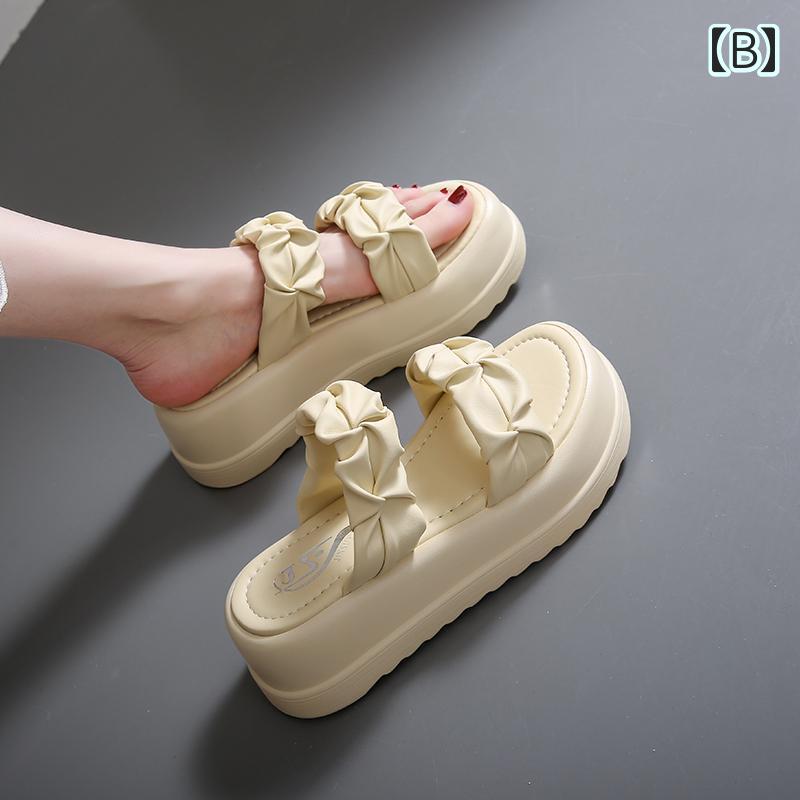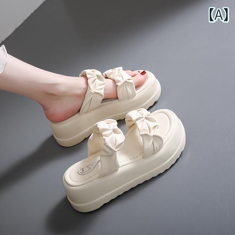 厚底 ビーチサンダル くしゅくしゅ 可 靴 豊富な品揃え A:オフホワイト B:イエロー C:ブラック D:グリーン 22 22.5 23 23.5 24 24.5