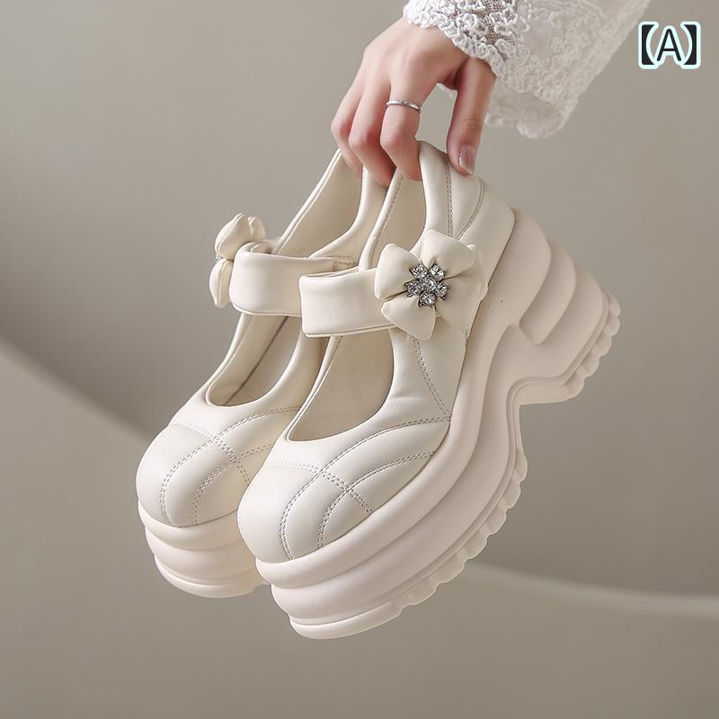 9cm ウェディングシューズ 厚底 パンプス 個性的 可愛い 白 黒 韓国系 キラキラ ラインストーン 花 フラワー ハイヒール 身長アップ レザー ローファー シューズ 脚長 スタイルア レディース