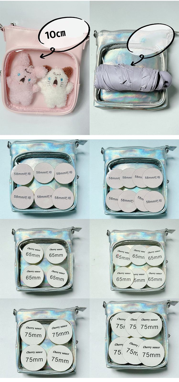 分のコレクションを持ち歩けるバッグです。マイコレクションをオシャレに持ち歩きましょバッグの透明ポケットで見せたいアイテムで自分の好みにアレンジできます。バッグの片面の透明ポケットで見せたいアイテムで自分の好みにアレンジできます。