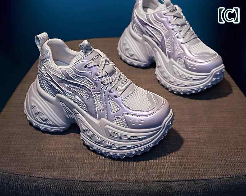 10cm 超厚底 ハイテクスニーカー 靴 特集 A:ホワイト B:グレー C:グレーパープル 21.5 22 22.5 23 23.5 24 24.5